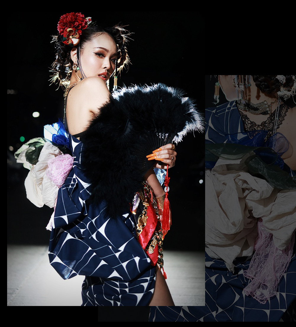 ダンサーにおすすめの華やかでクールなモダンデザインの浴衣をお探しなら、bombshellのゆかたで決まり♪