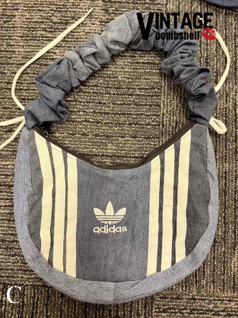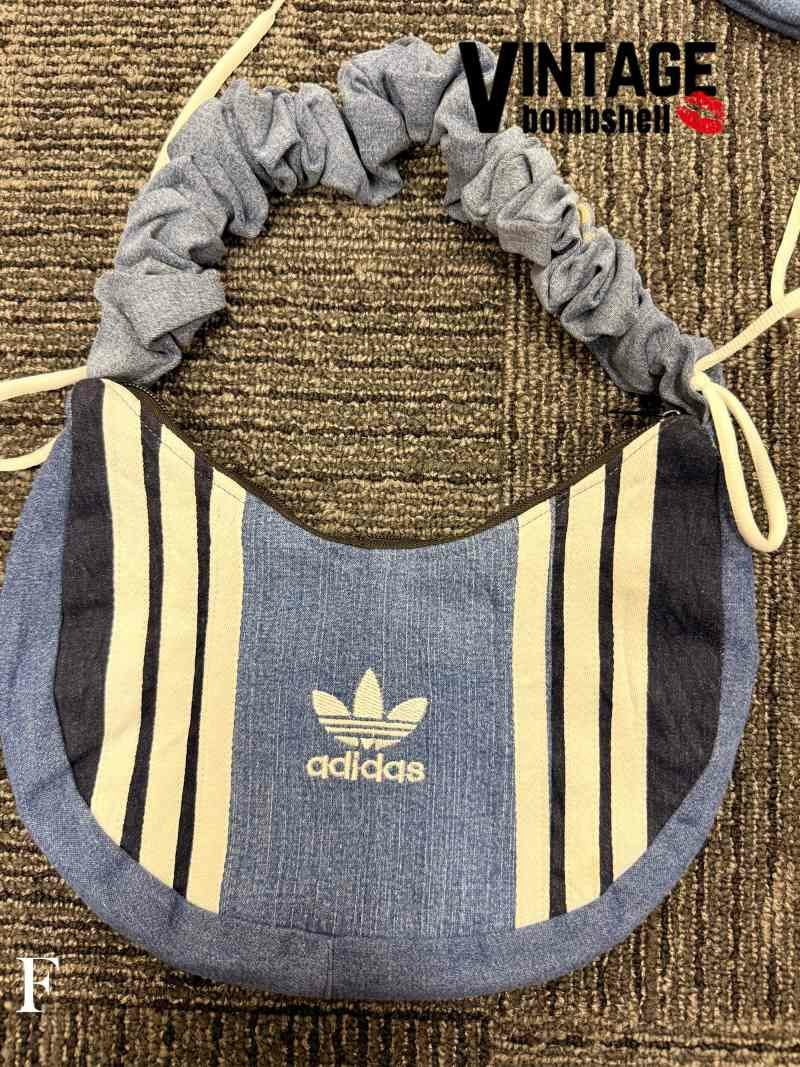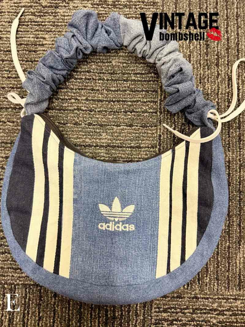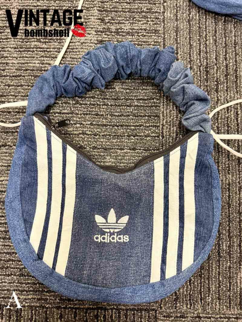 デニムパンツとadidasの象徴的な3本ラインを大胆に組み合わせた、個性派リメイクバッグが登場。