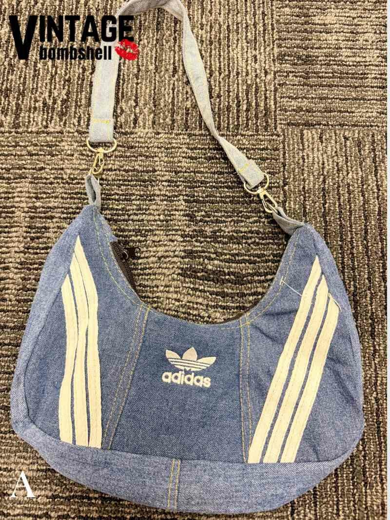 ヴィンテージのadidasジャージとデニム生地を巧みに組み合わせた、完全1点物の再構築ショルダーバッグ。