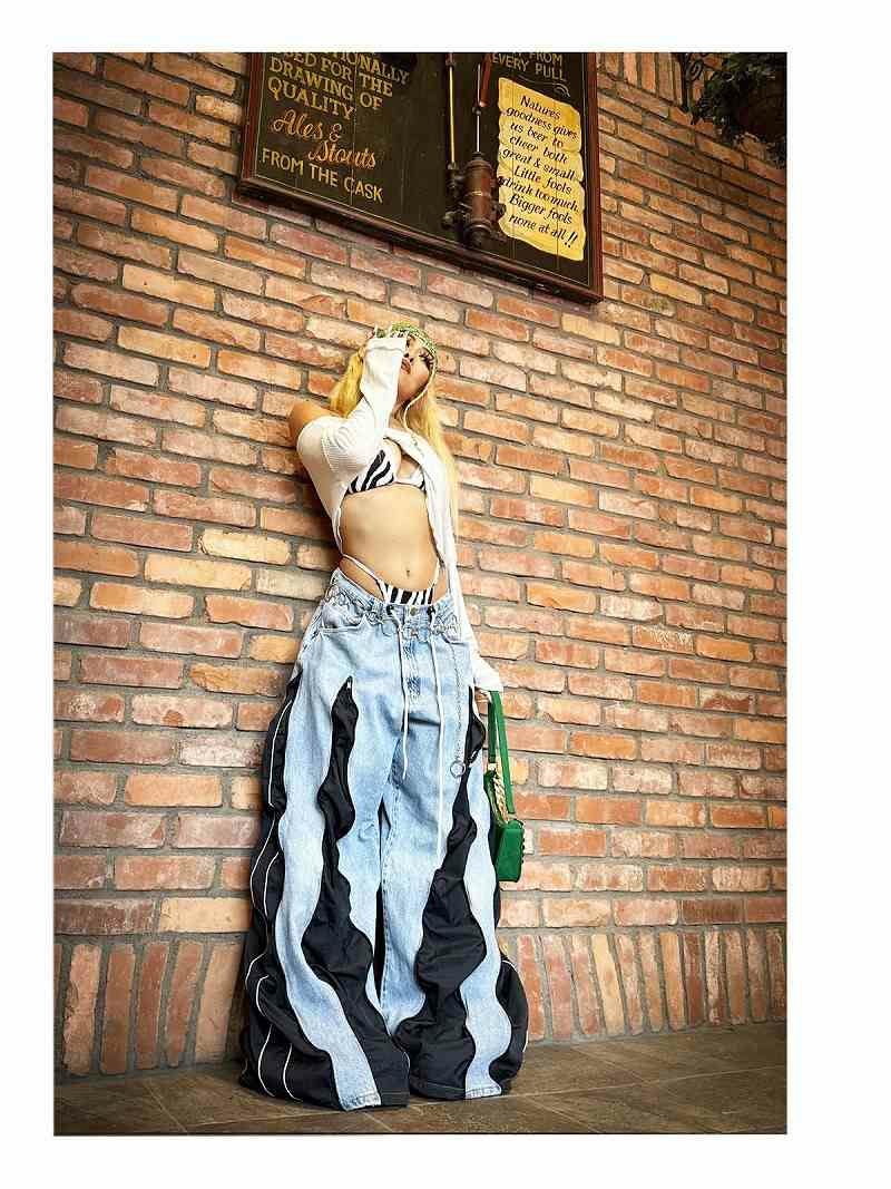 裾に向かって大きく広がるバギーシルエットは、Y2Kや韓国ファッションのトレンドに完全フィット。