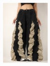 デニムの黒とカーキの異素材の切り替えは、波打つようなウェーブデザインが特徴で、他にない独創的なシルエットを生み出します。