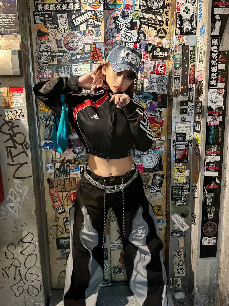 ストリート感あふれるバギーシルエットと、メッシュ素材の軽やかさがダンスシーンに最適。
