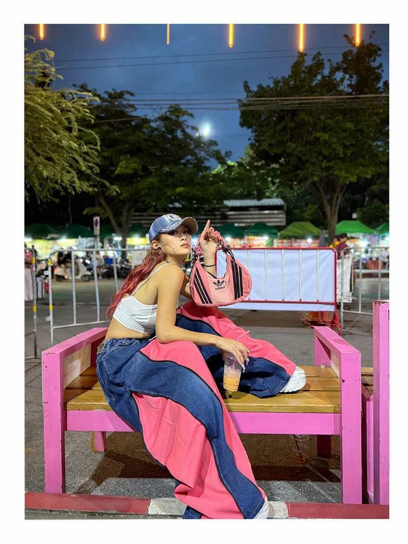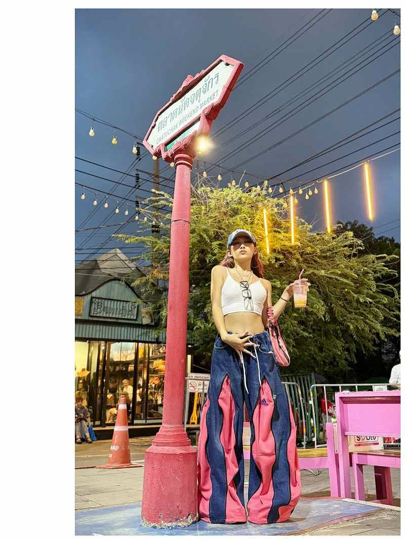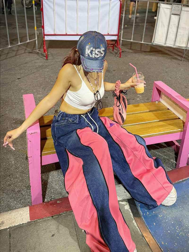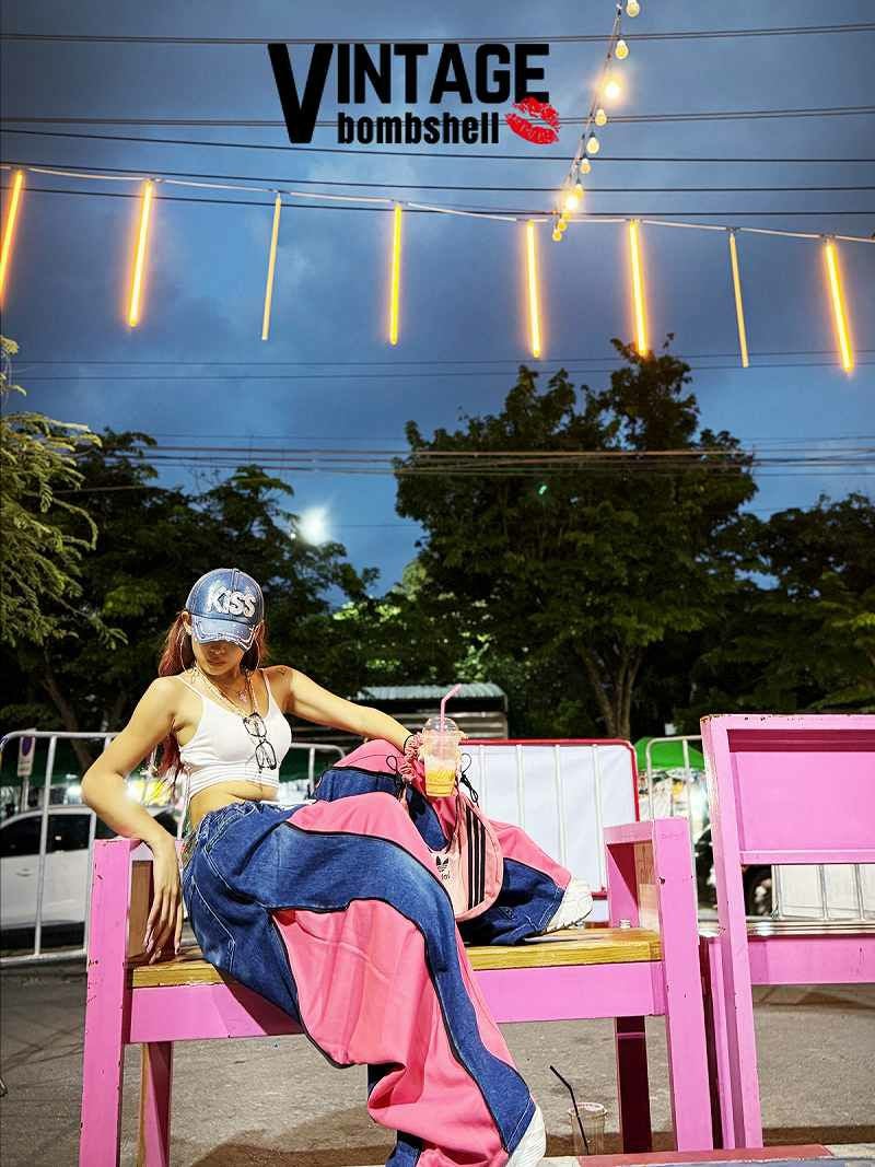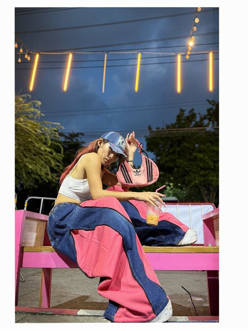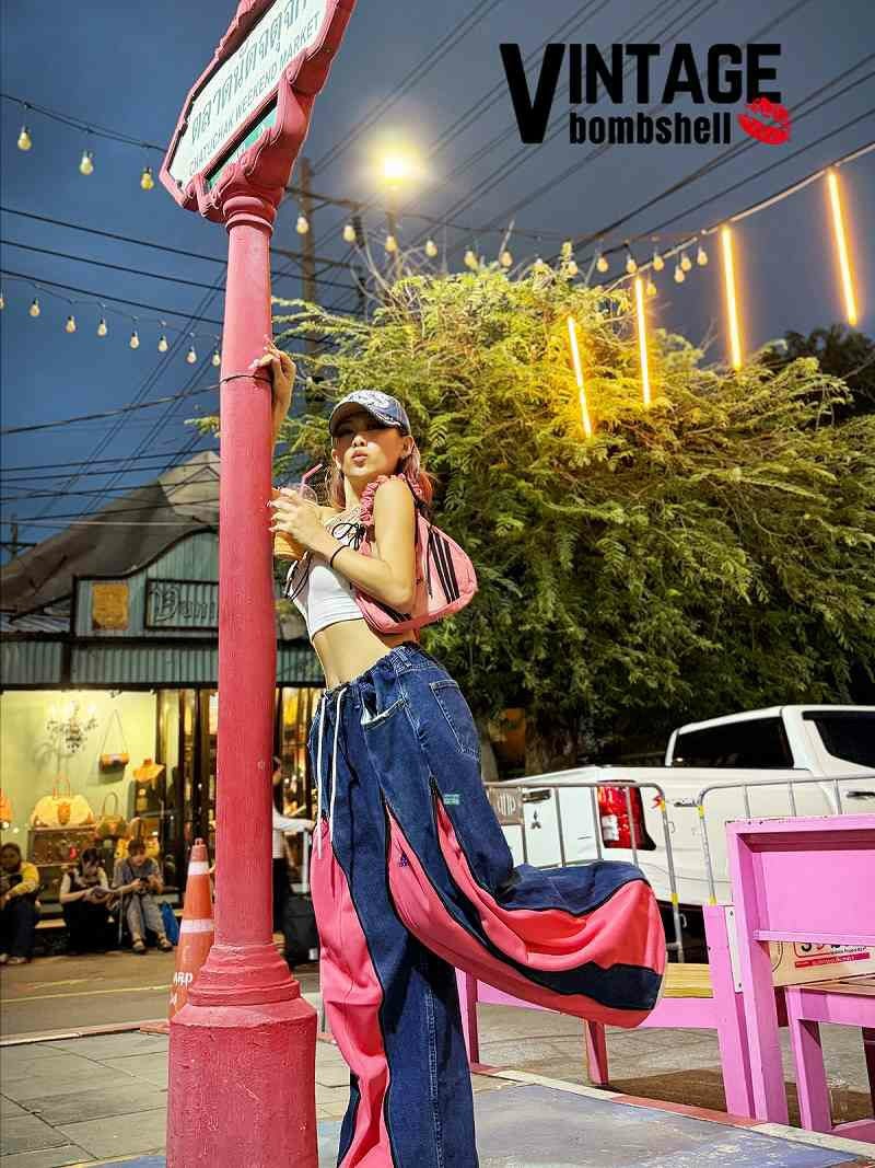 甘めなピンクとカジュアルなデニムの異素材ミックスが、最新の韓国ストリートやY2Kスタイルを完璧に仕上げてくれます。