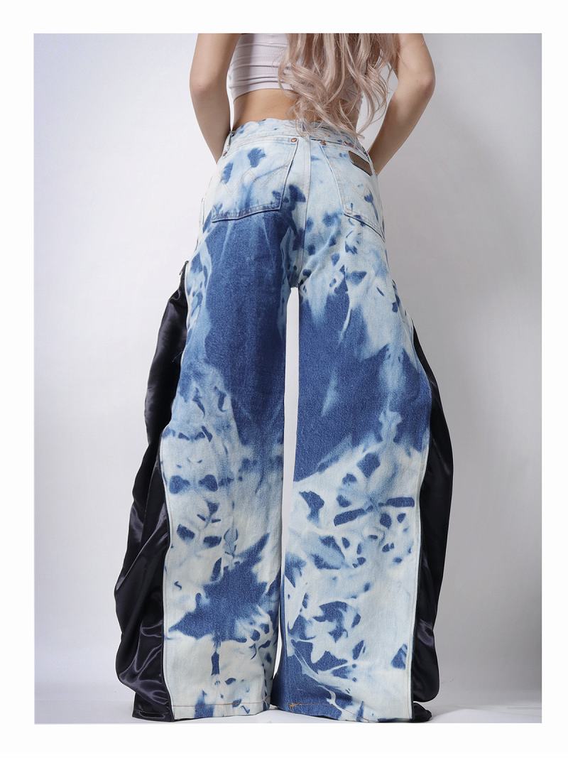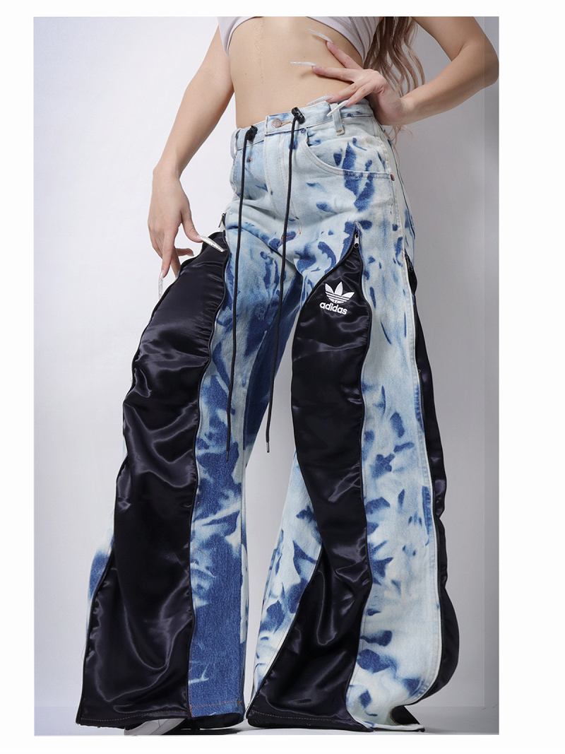 タイダイ染めのデニムに艶のあるブラック生地をドッキングしたリメイクパンツです!