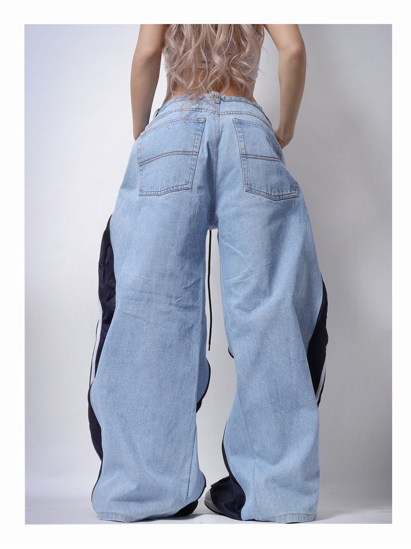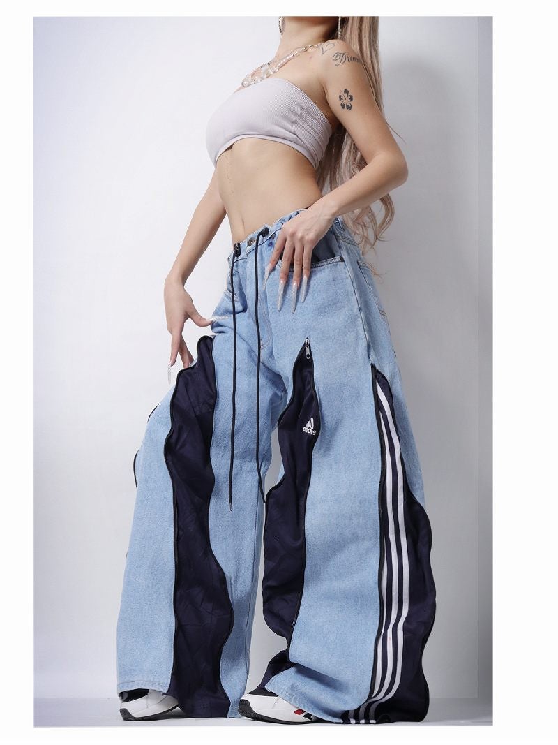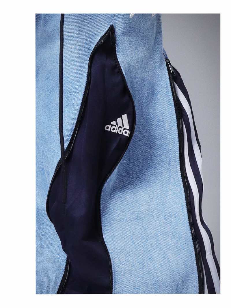 ウォッシュデニムにネイビーのadidasジャージを組み合わせた、圧倒的な個性を放つ再構築パンツです!