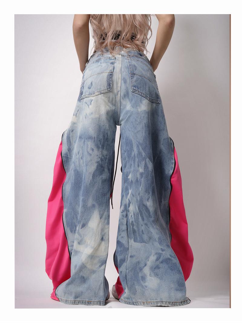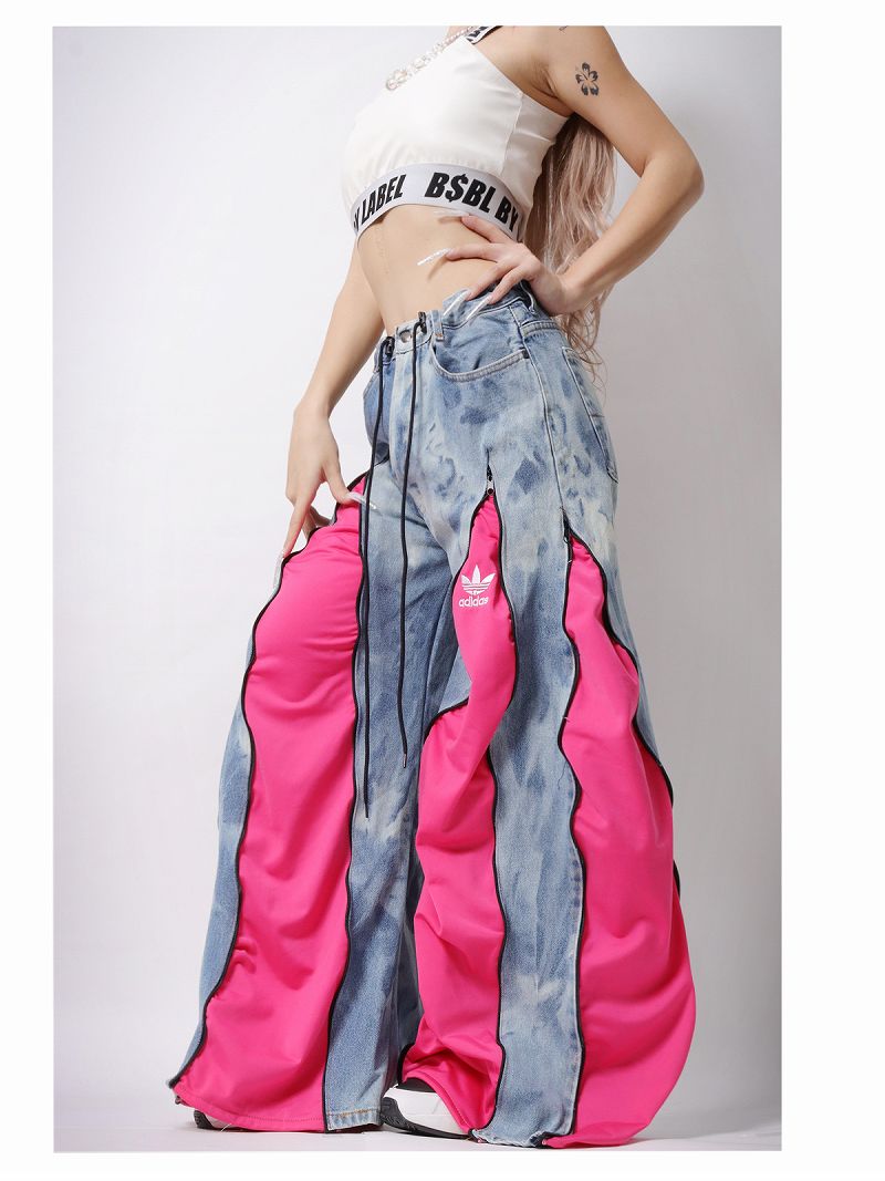 薄めのタイダイブルーとビビッドピンクのコントラストが可愛い、adidasリメイクのワイドパンツです。