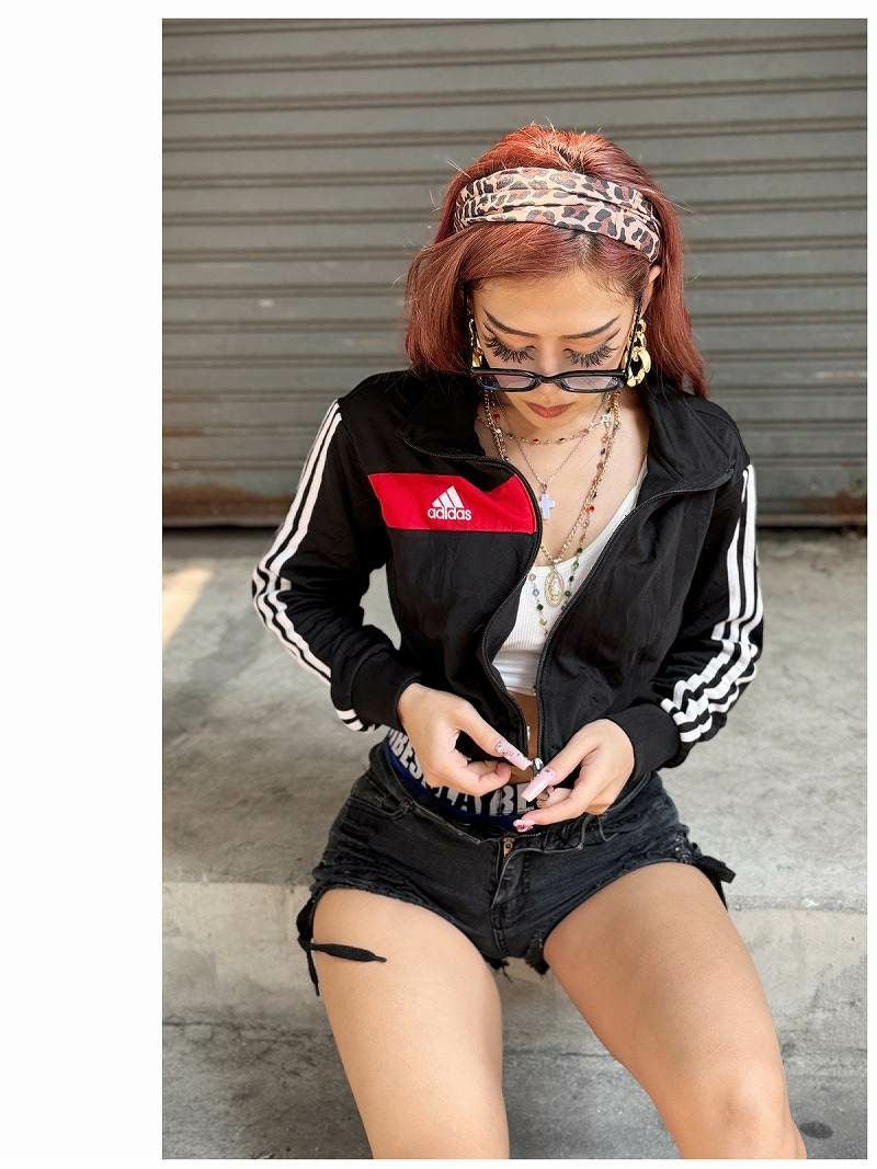 スリムな形とへそ出し丈がダンサーファッションにピッタリ。