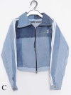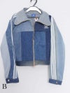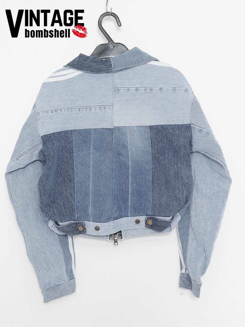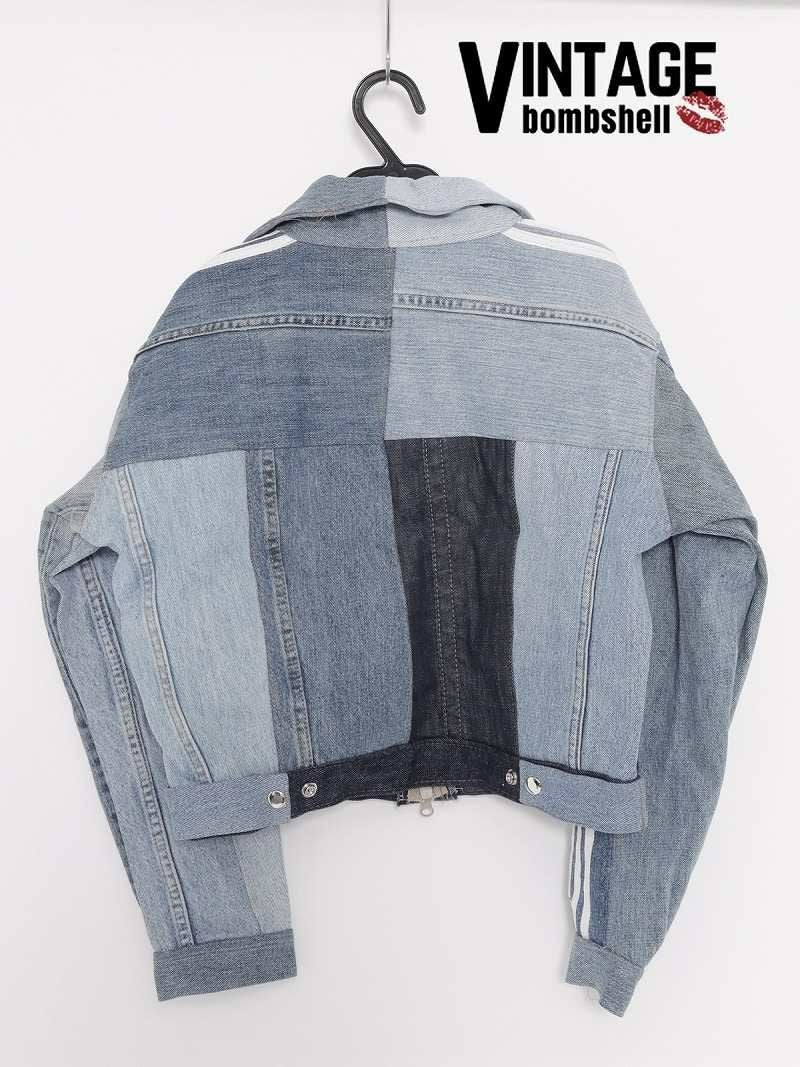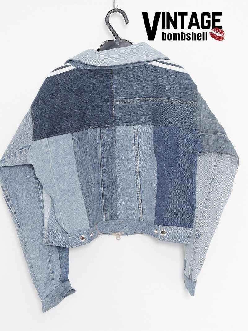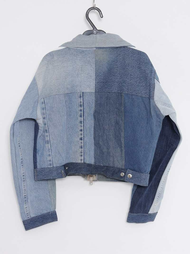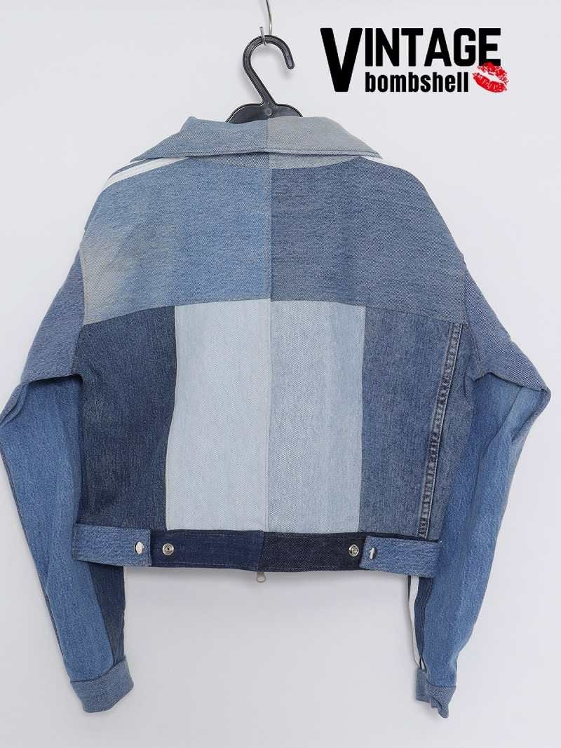 濃淡ある青デニムをつなぎ合わせたパッチワークデザインがおしゃれ!