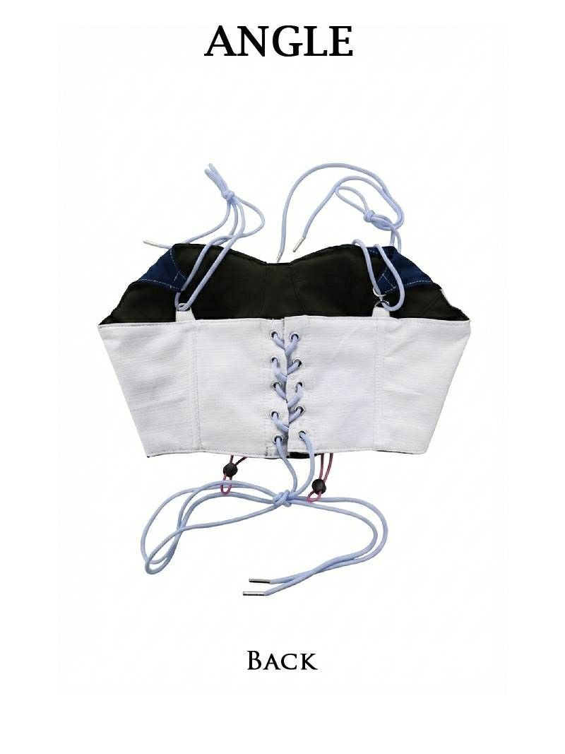 背面のスピンドル紐でサイズ調整も可能なため、タイトに絞ってボディラインを強調したり、レイヤードを楽しんだりとアレンジは自由自在。