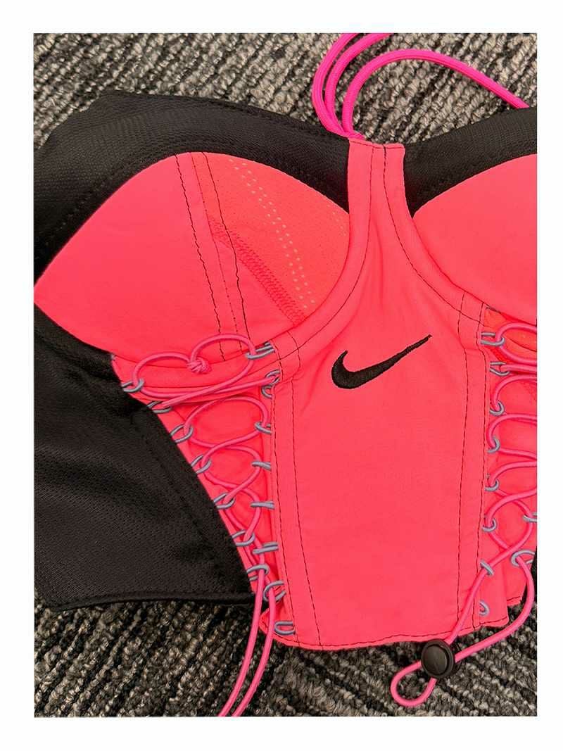NIKEのジャージ素材を大胆にリメイクした、エッジの効いた配色が魅力の再構築ビスチェ。