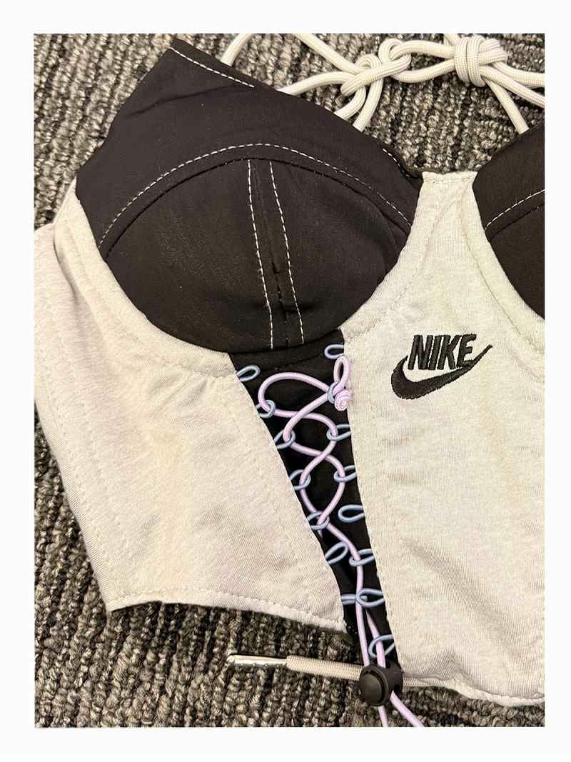 NIKEのジャージ素材を贅沢に再構築した、ストリート感溢れるリメイクコルセットビスチェ。