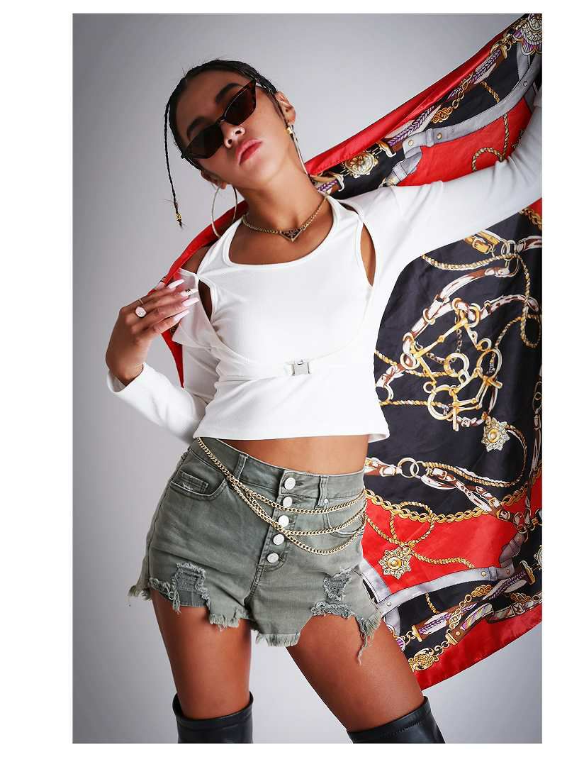 フロントバックルがスタイリッシュに映える!セクシーさの中にスポーティさが絶妙にMIXされた長袖リブカットソー。