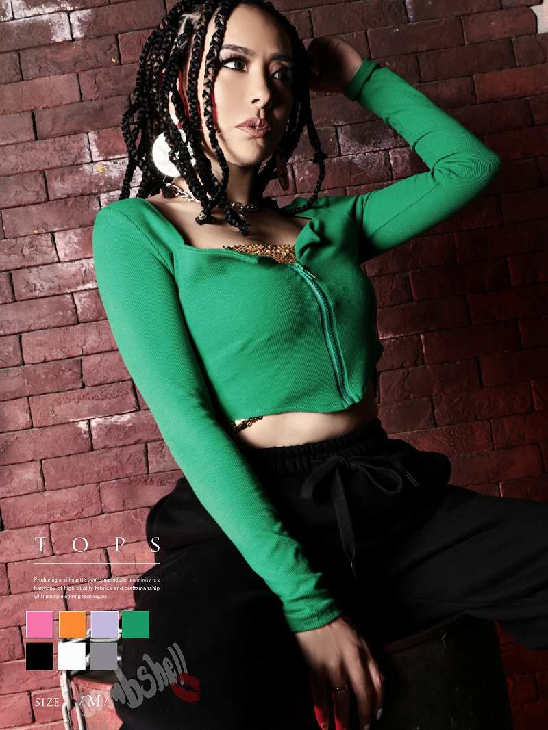 フロントジップがエロかっこいい!大胆セクシーにジップを開けたりクールに着こなしたい時は閉めて着用できるので着回し抜群◎