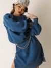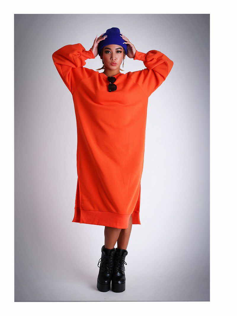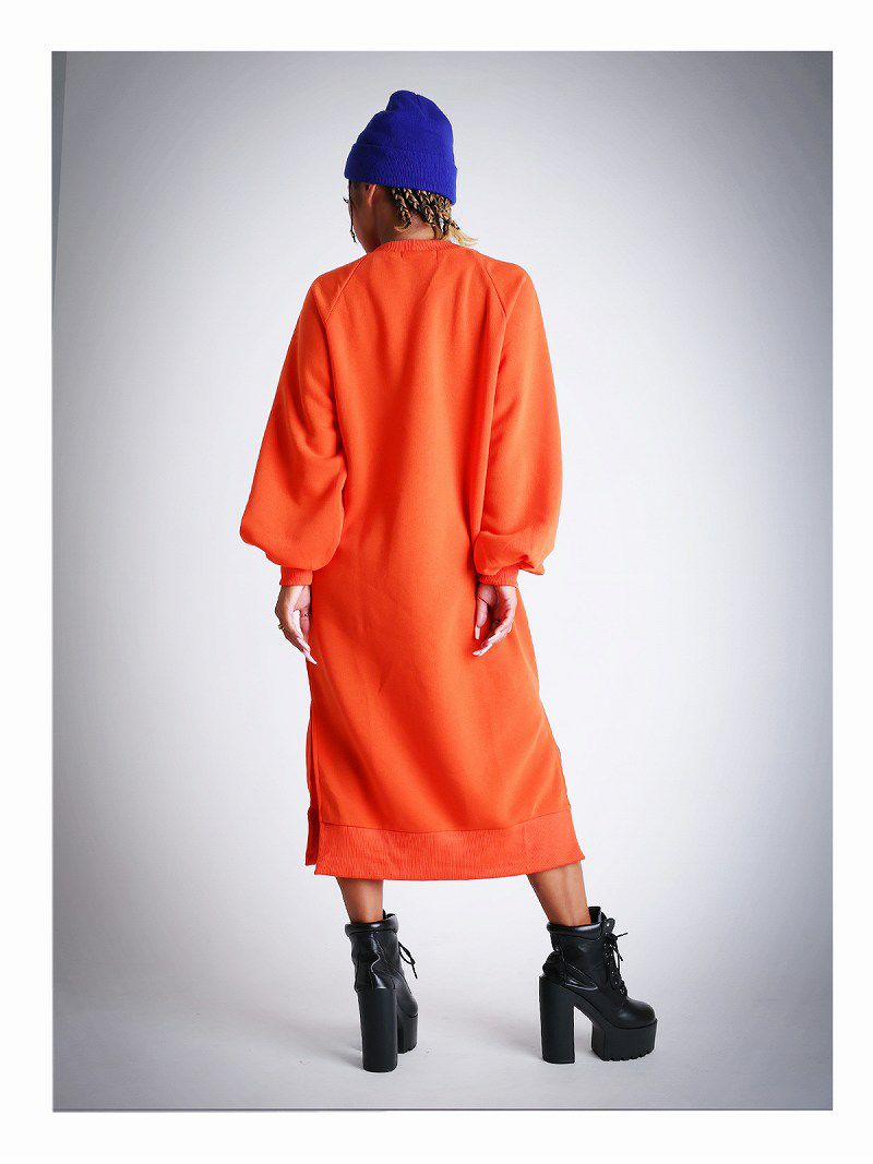 あったか裏起毛とボリューム袖が今の時期にバッチリ!オーバーサイズのゆるダボスウェットフリースワンピ。