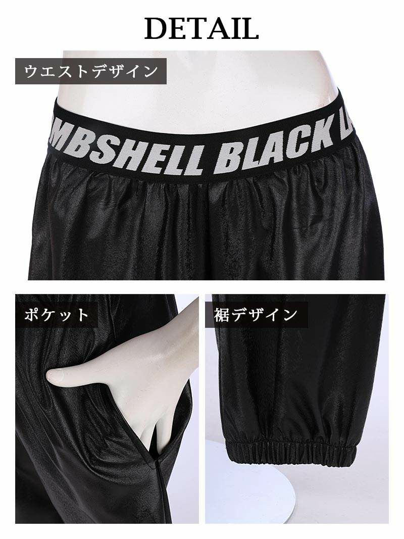 ウエストのbombshellロゴデザインが超COOL!!レザー風ゆるだぼオーバーサイズストレッチパンツ♪