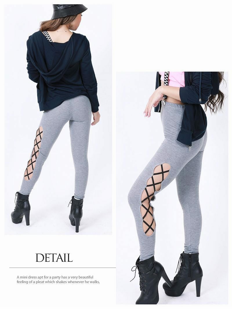 脚のラインを美しく魅せる、セクシーなレースアップロングレギンス。