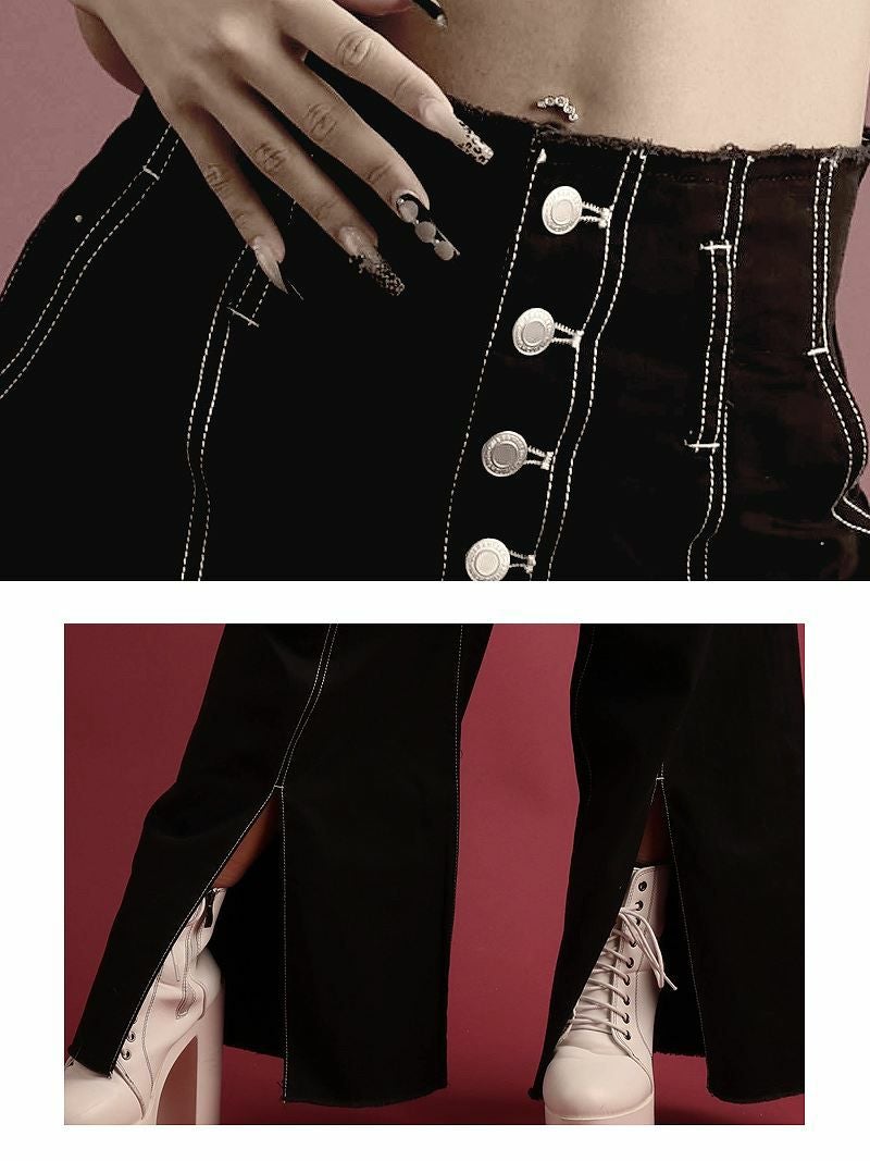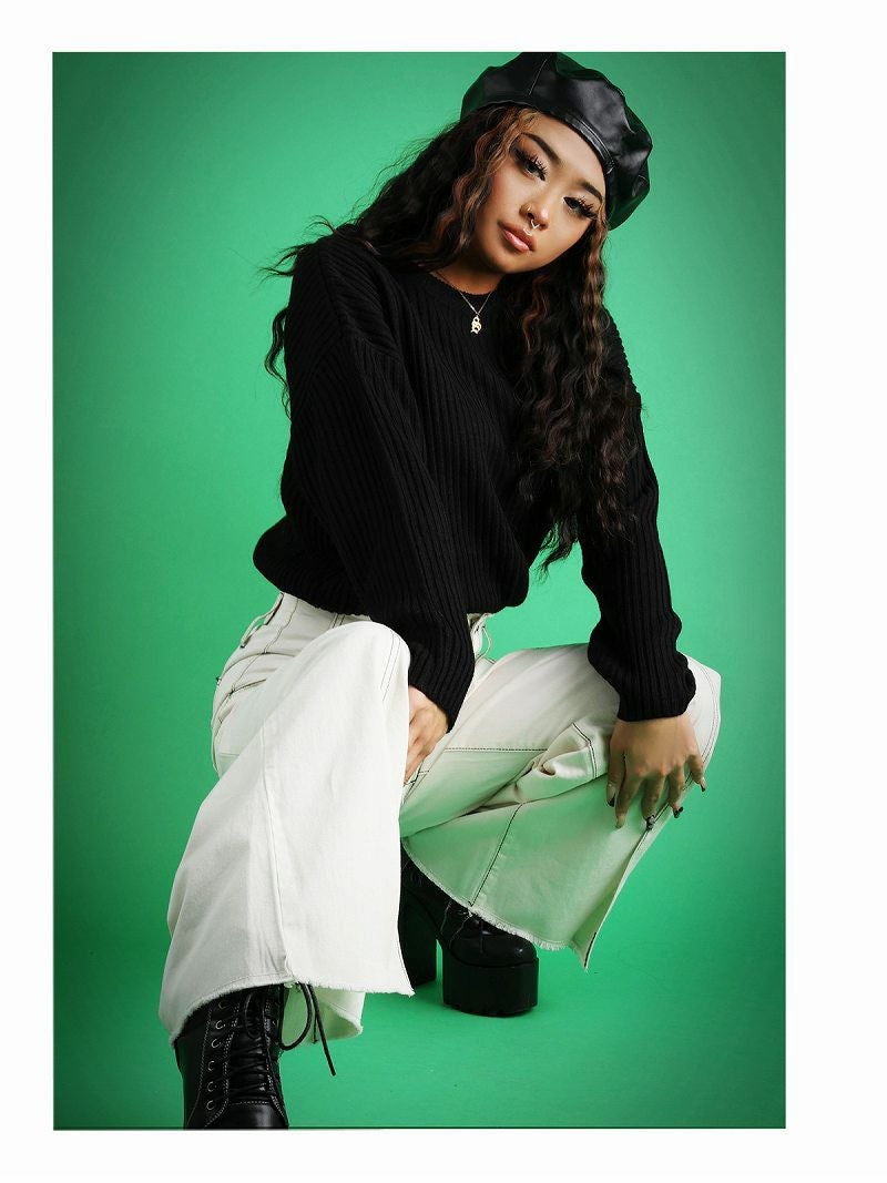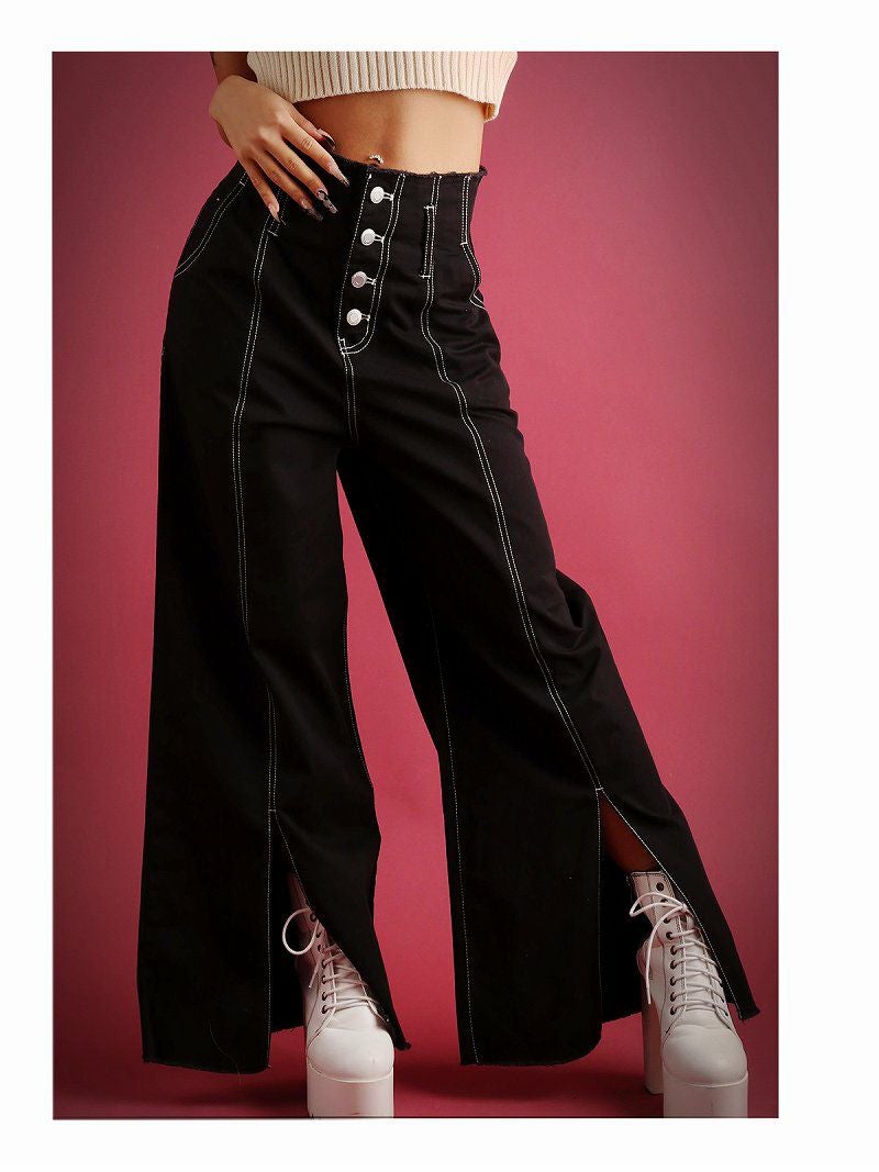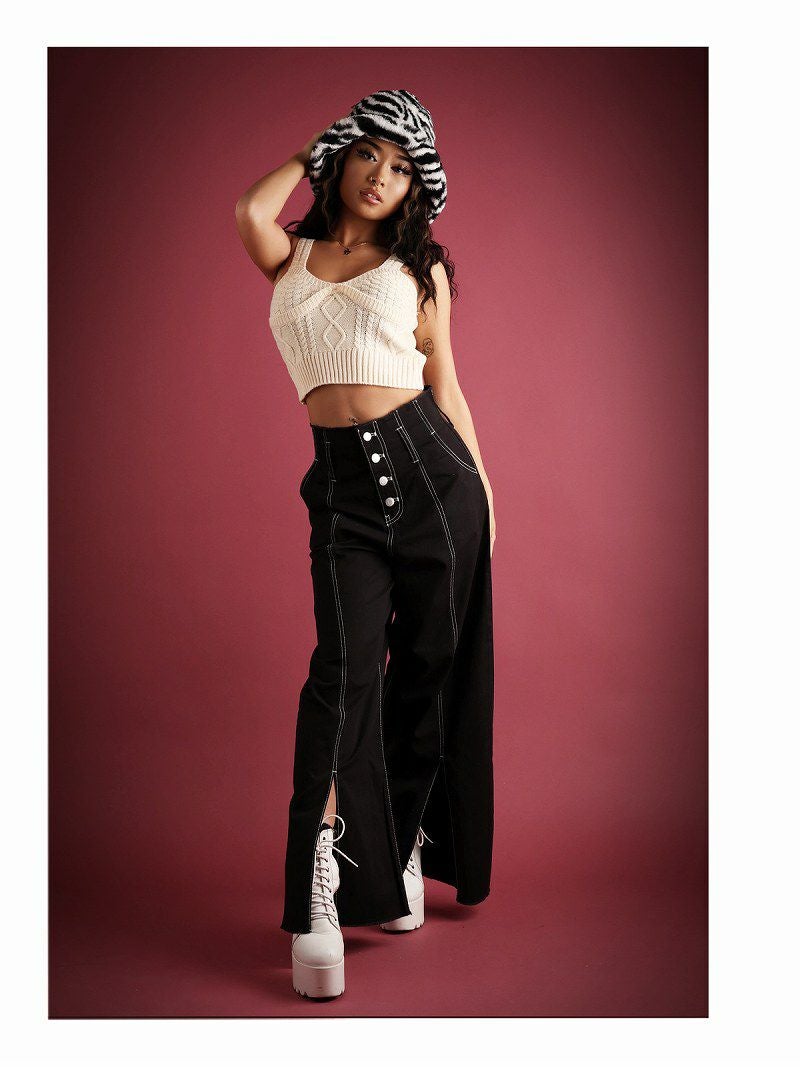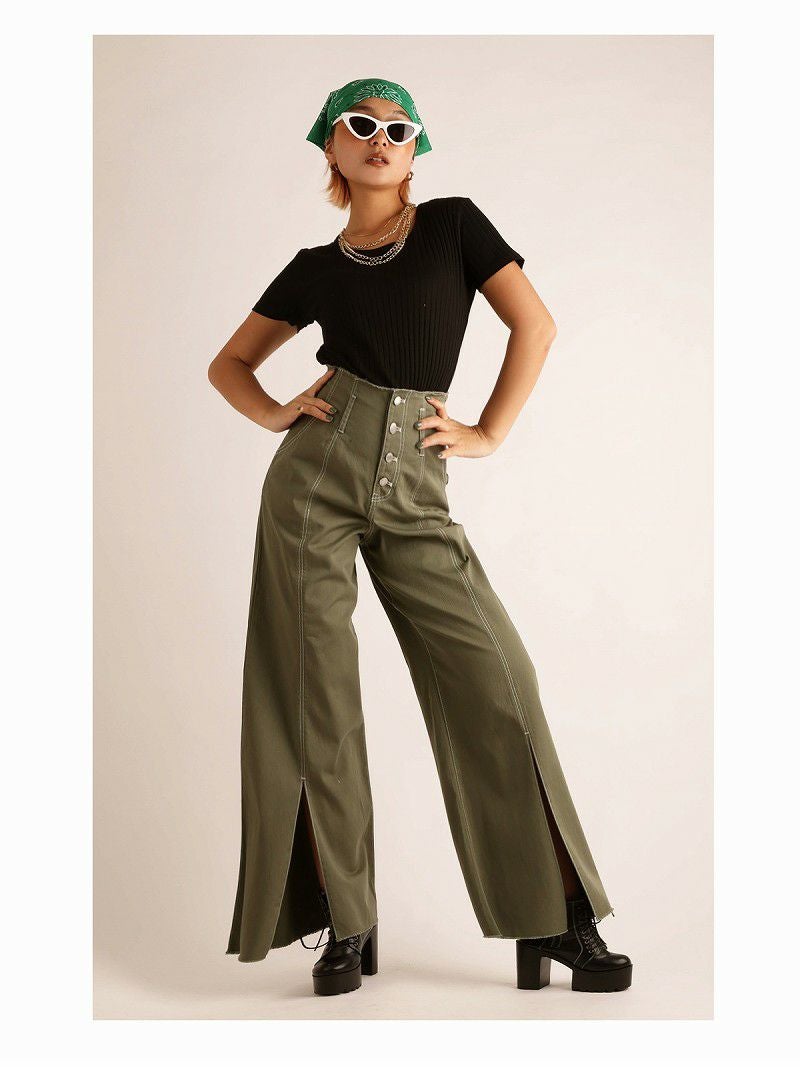 スリット入り無地パンツで脚長効果抜群!インポートファッション好きにオススメボトムス。