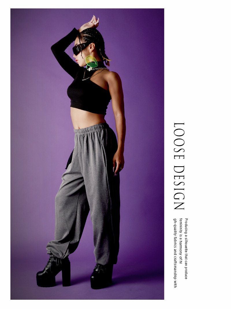 ゴム裾×ウエスト調整可能で快適!HIPHOPスタイルにもハマる無地スウェット!
