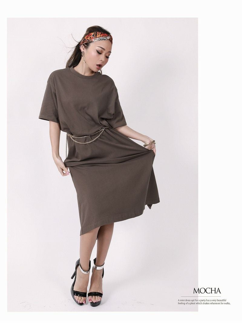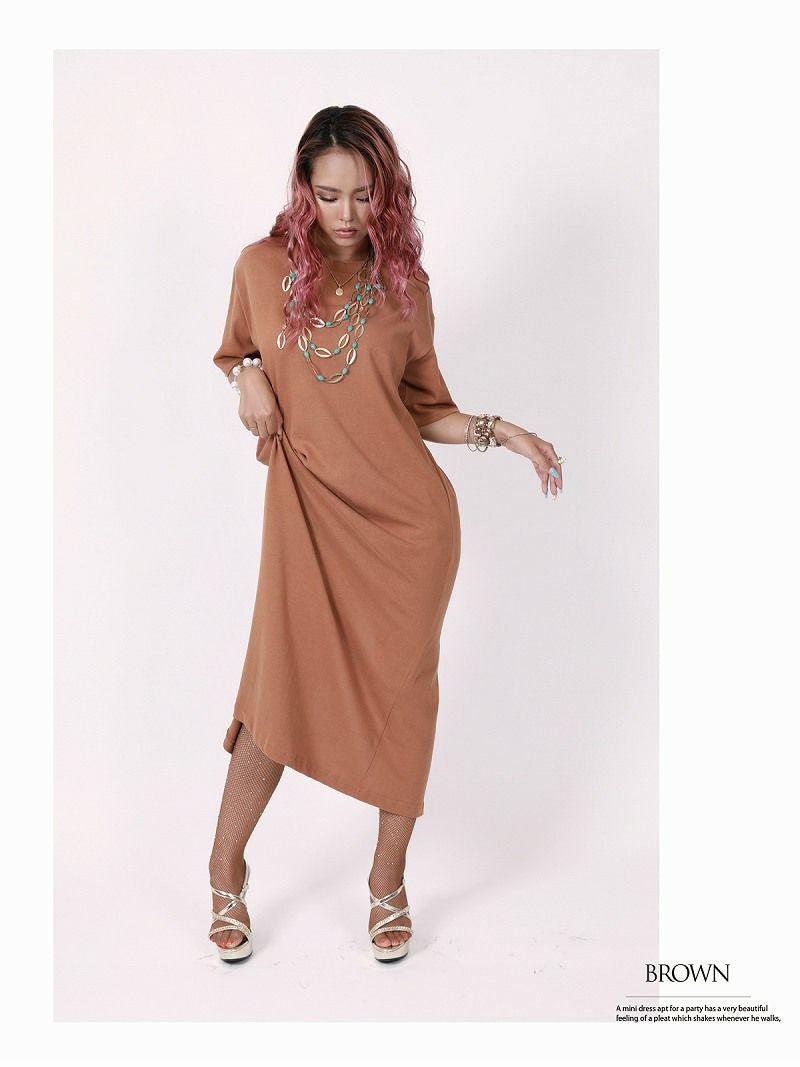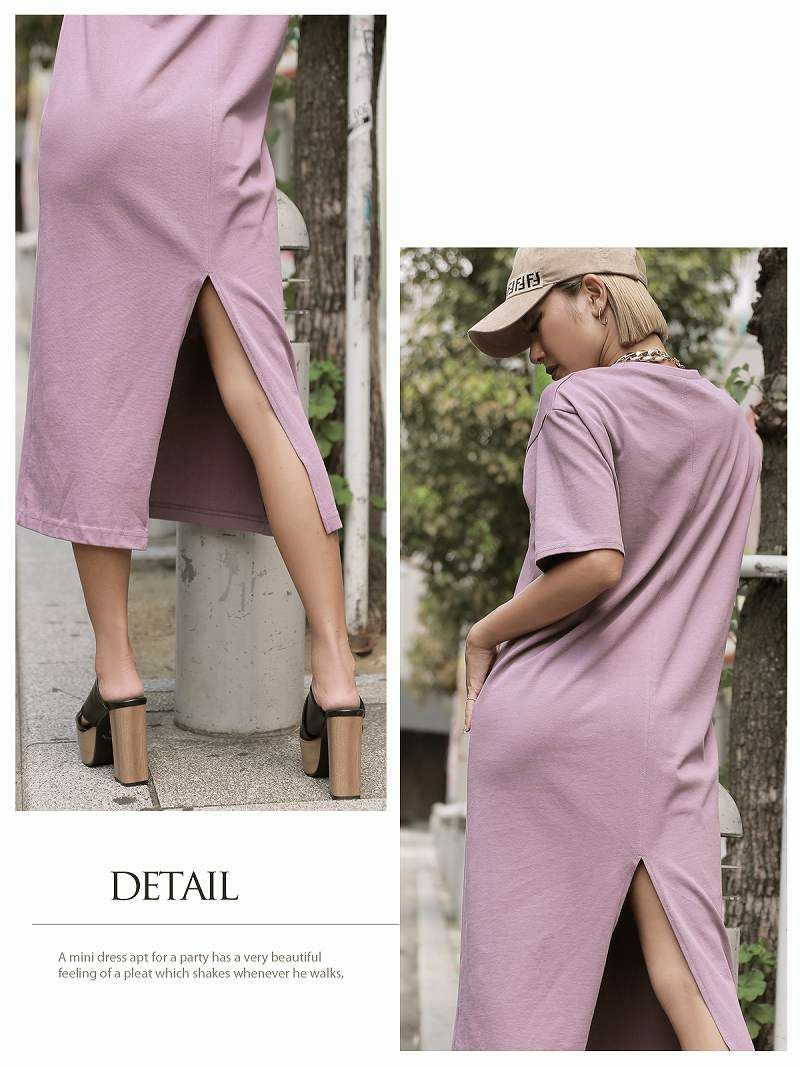 ゆったりTシャツワンピで楽かわ抜け感スタイル完成!五分袖で気になる二の腕もこっそりカバーできちゃう通気性◎なコットン100%で夏も快適おしゃれに!スリット入りでボトムス合わせも自由自在!練習着にもデイリーにも使える万能Tシャツワンピ!