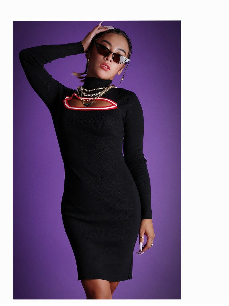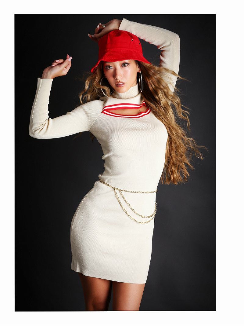 胸元のカットで大胆セクシー、クールでかっこいいニットワンピ。