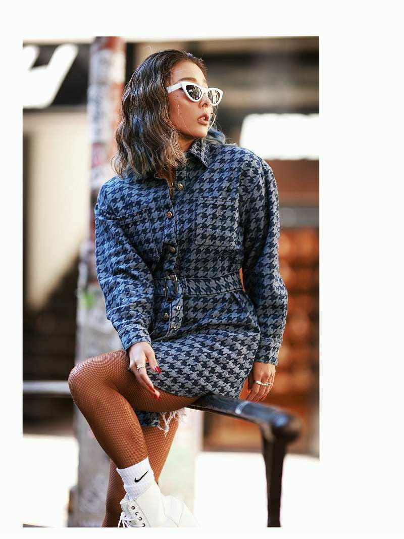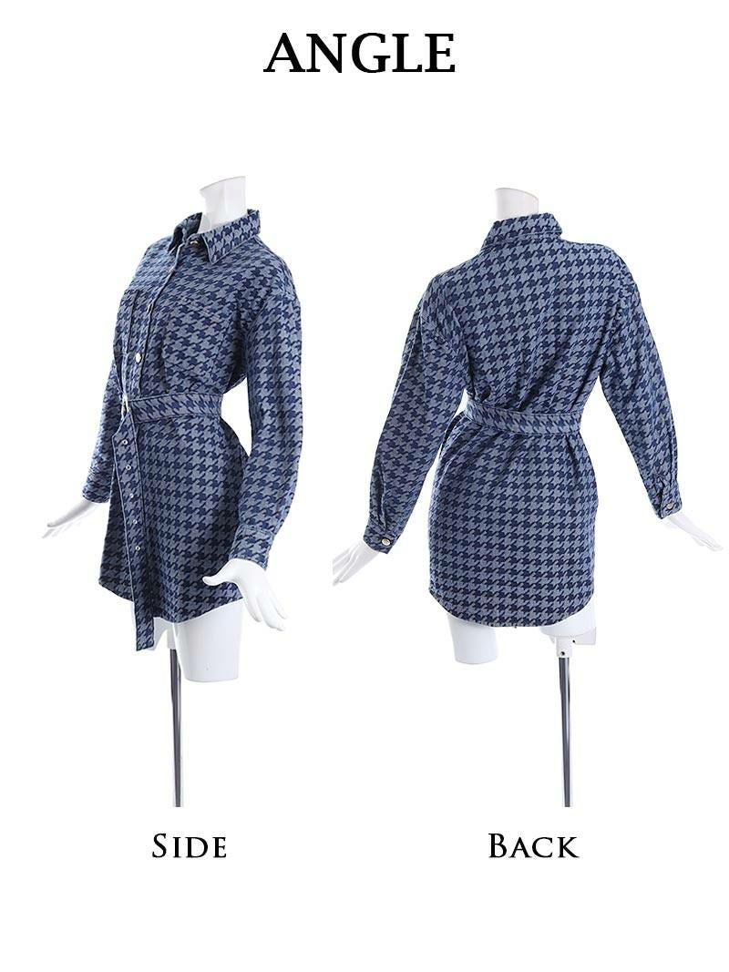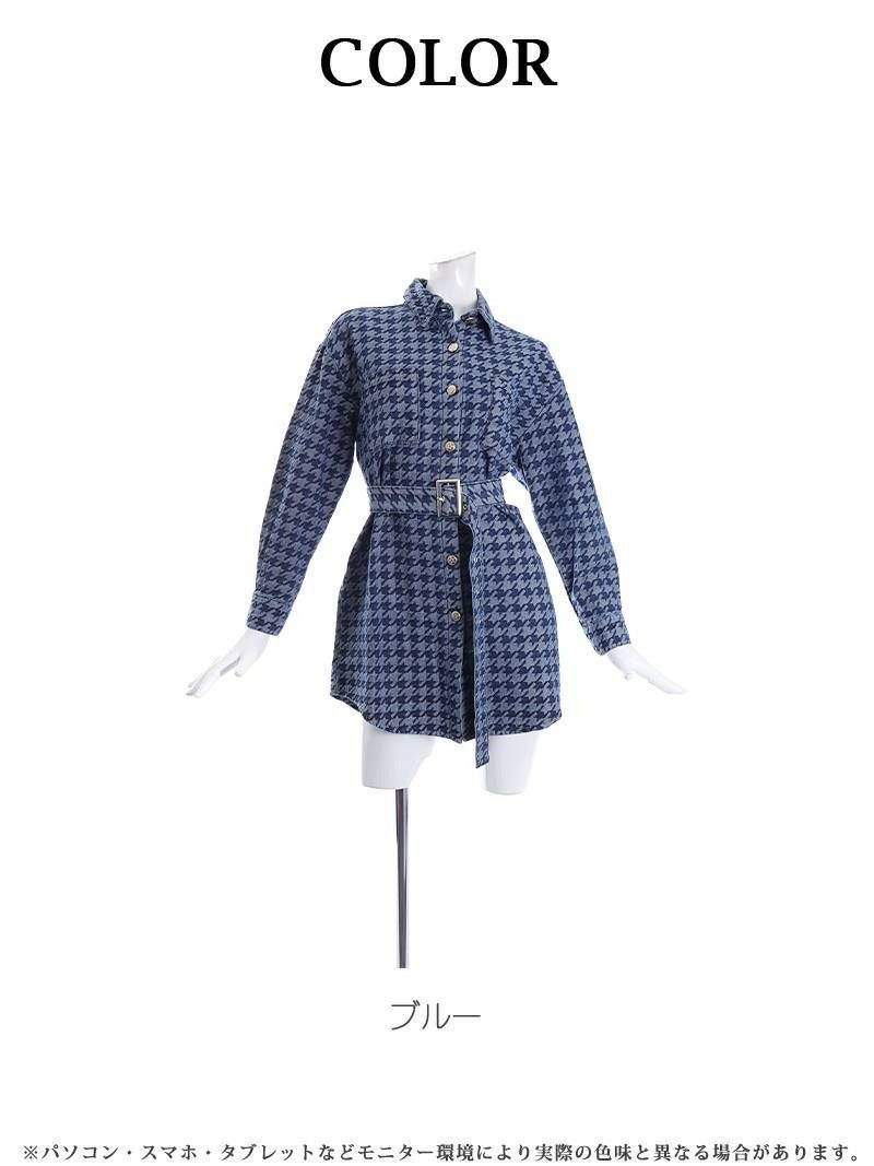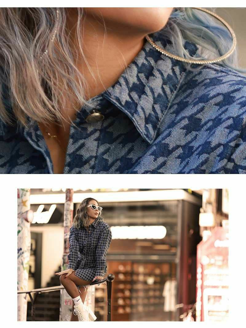 千鳥柄が派手可愛く映えて注目されること間違いなしのビッグシャツワンピース。