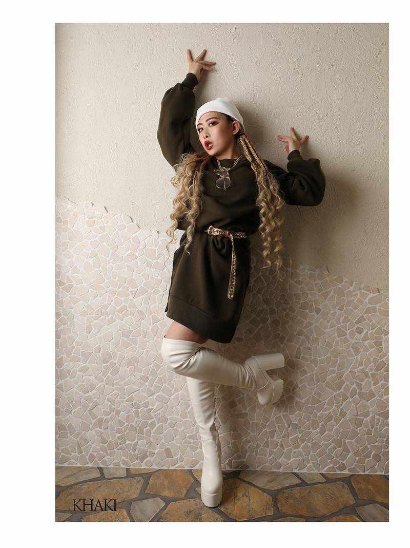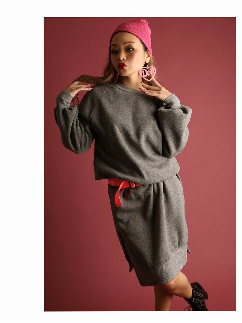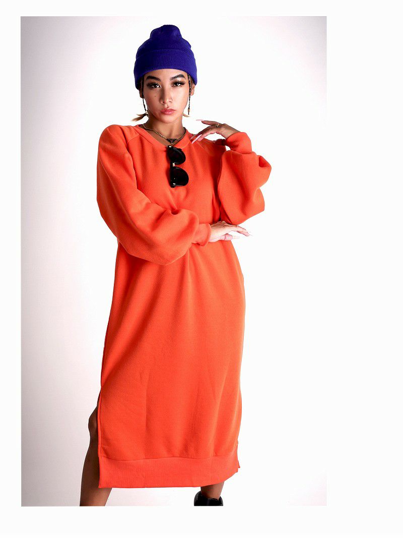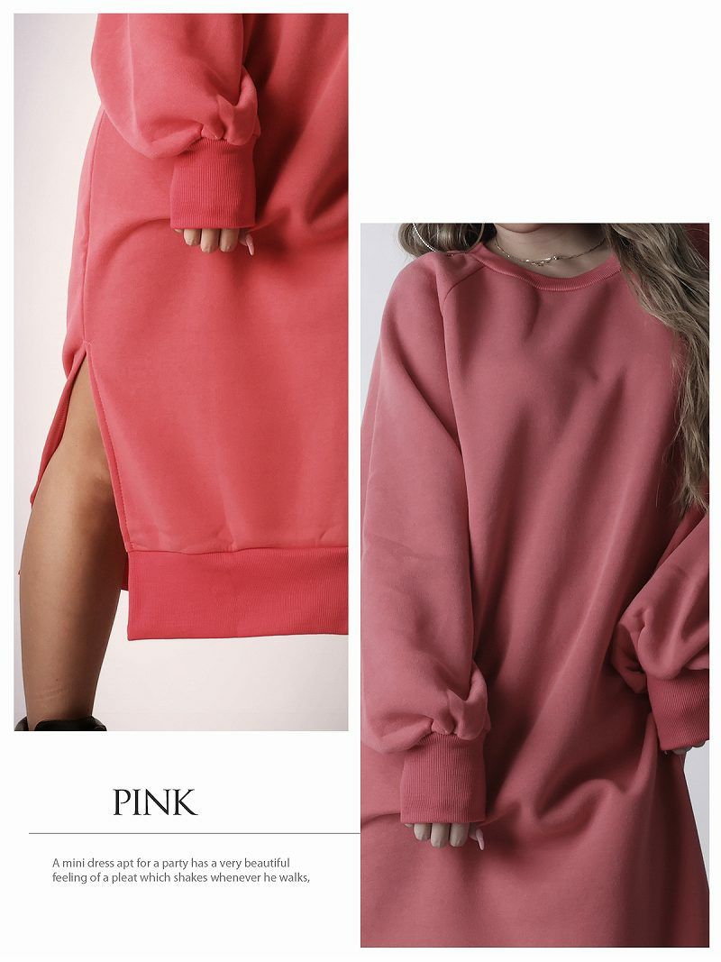 あったか裏起毛とボリューム袖が今の時期にバッチリ!オーバーサイズのゆるダボスウェットフリースワンピ。