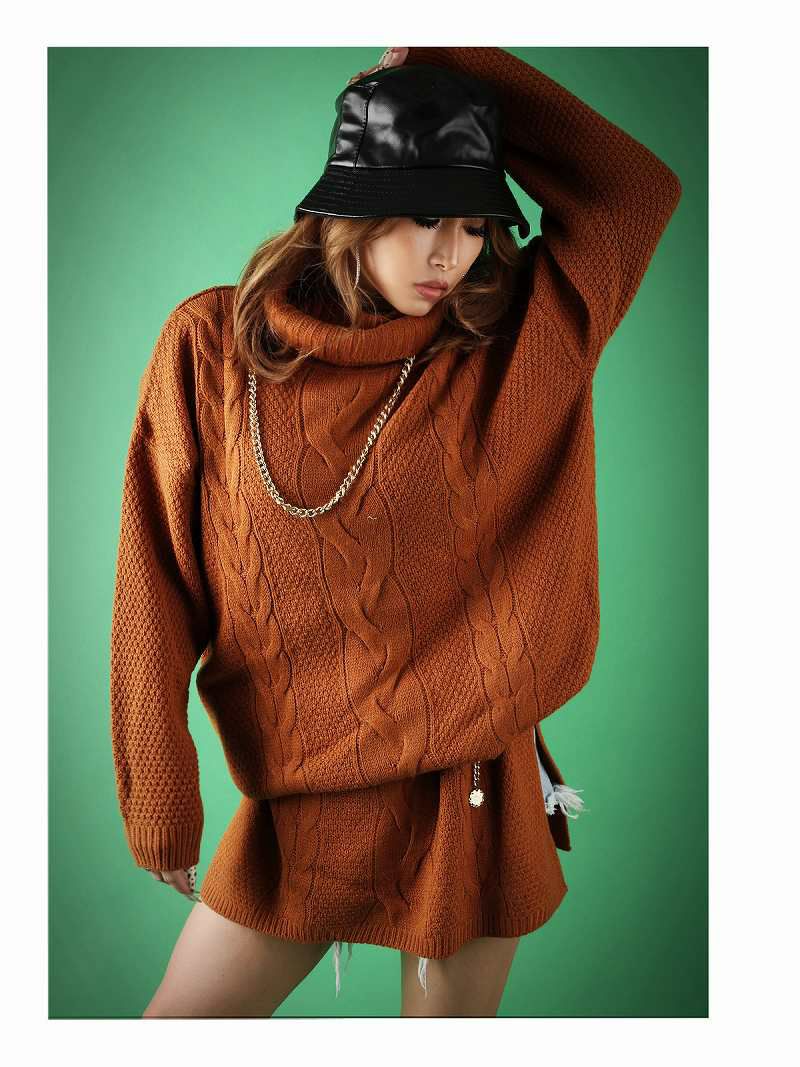 タートルネックニットワンピースケーブル編みオーバーサイズニット