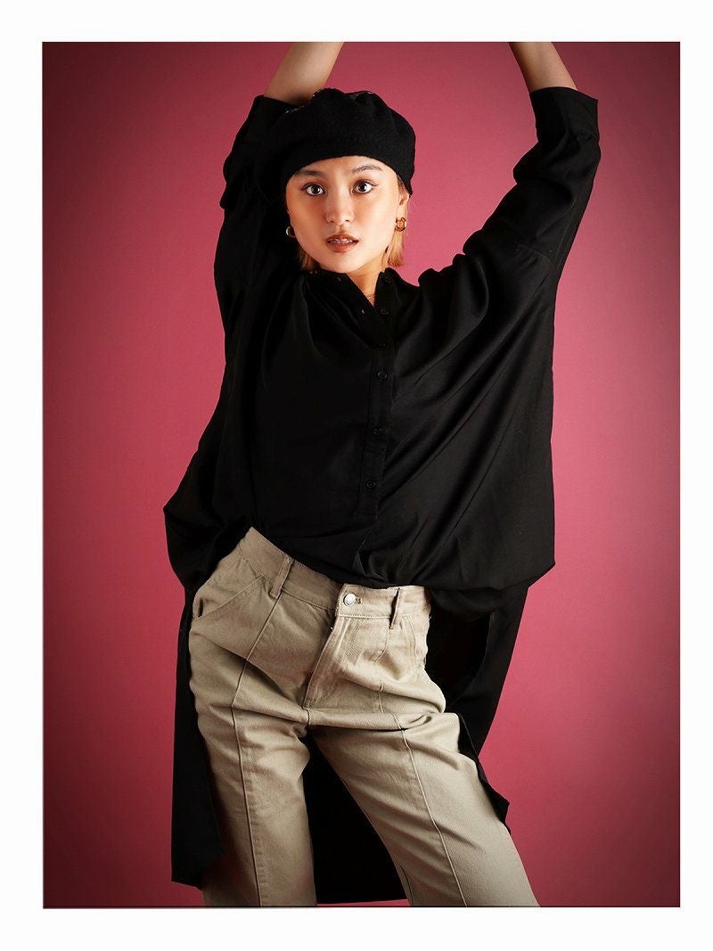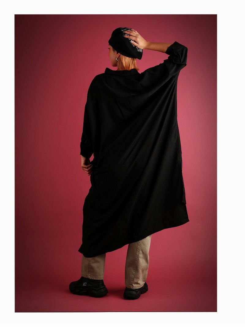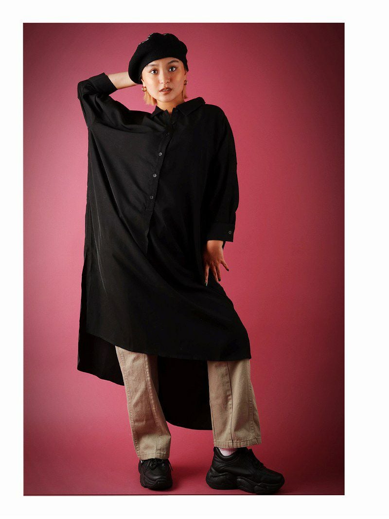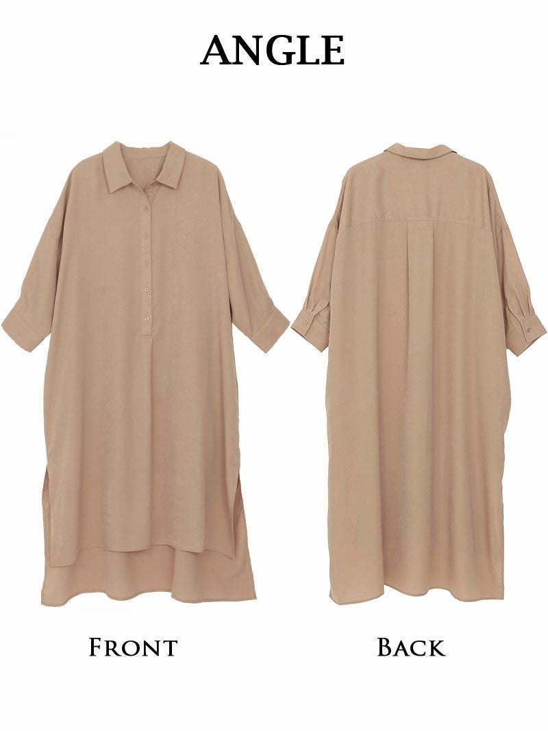 オシャレな前後差デザイン!ゆるシルエットで着心地最高なシャツワンピ。