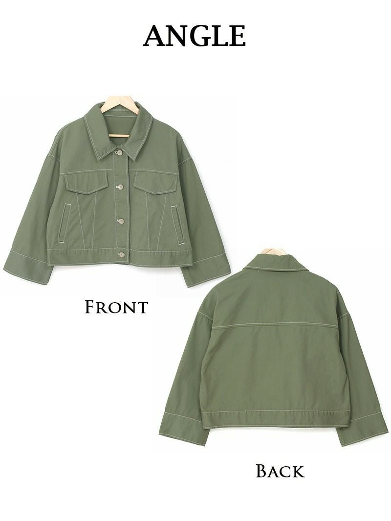 落ち着いたカラーにステッチがアクセントで襟&ポケット付き!