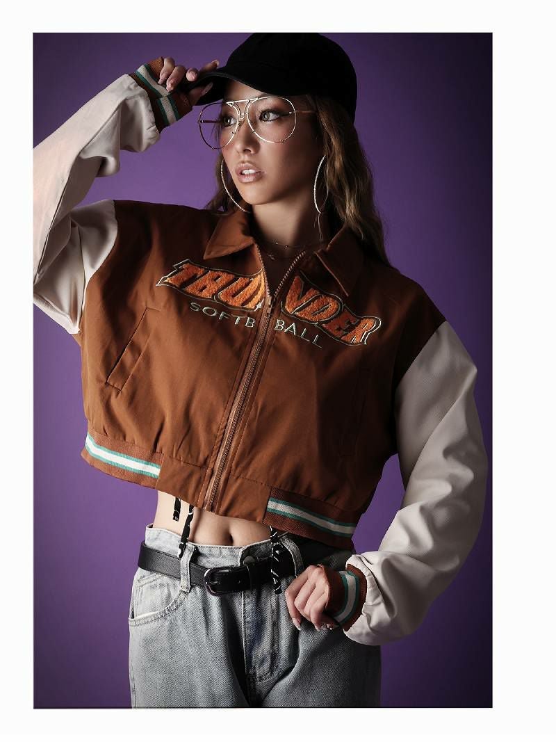 オレンジカラーのもこもこロゴワッペンが可愛いストリートなスタジャン♪