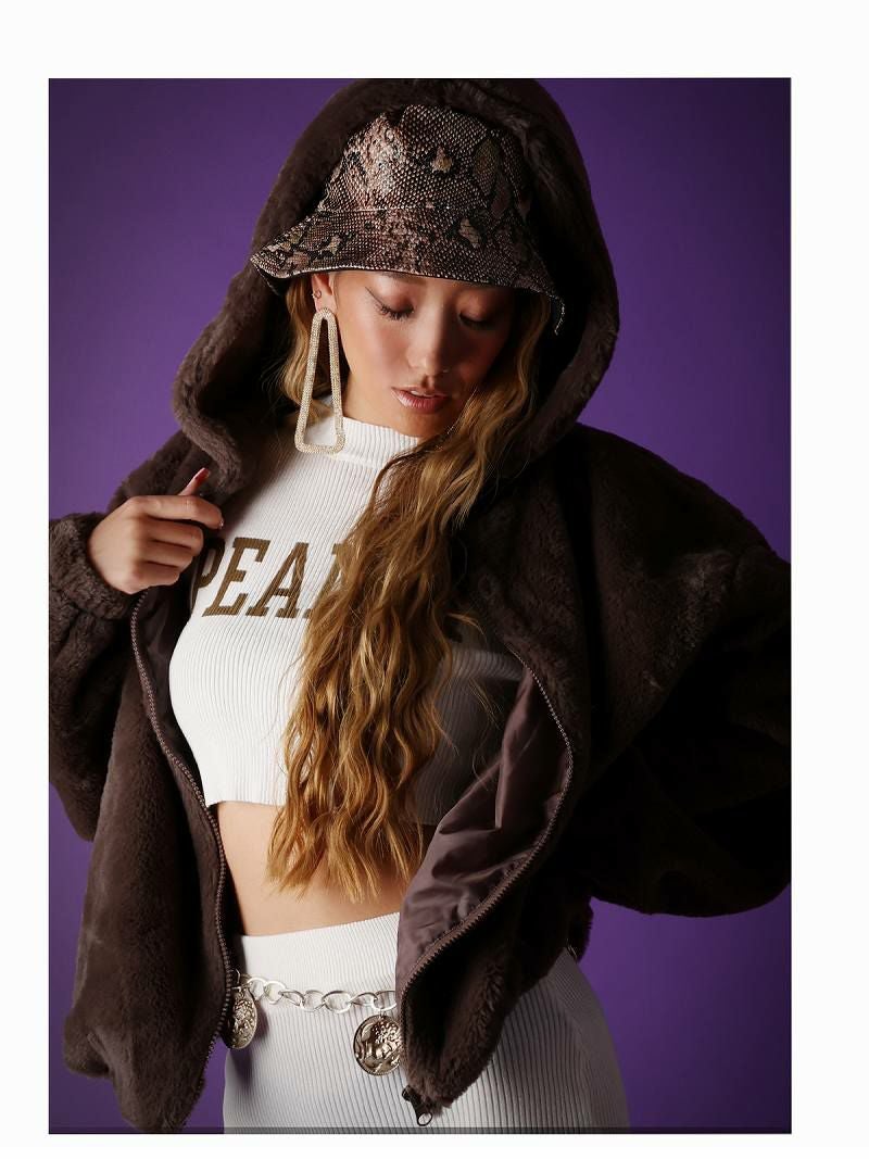 オーバーサイズシルエットが可愛いふわもこアウターは防寒対策もバッチリのフーディーアウター。