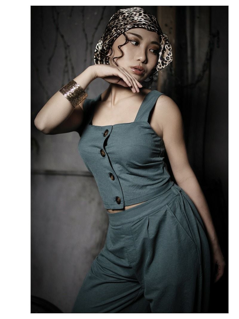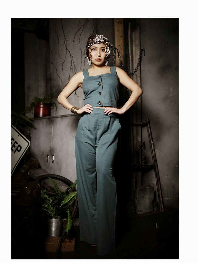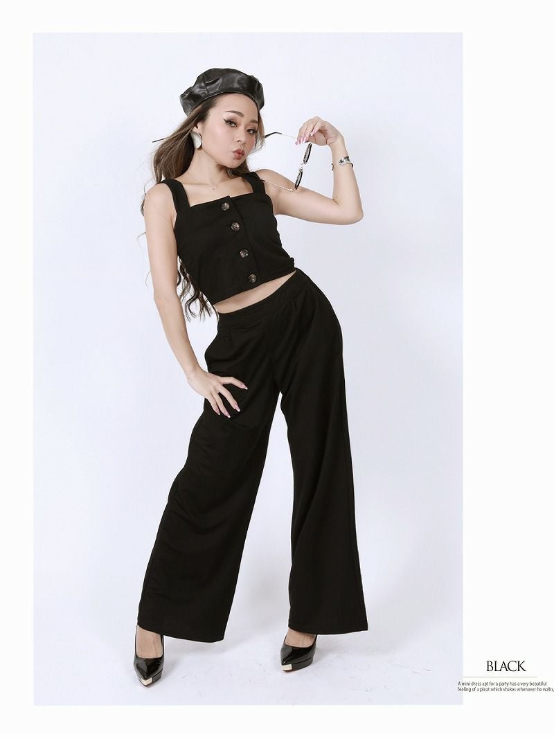 ハイウエストパンツで脚長効果バツグンの2ピース!