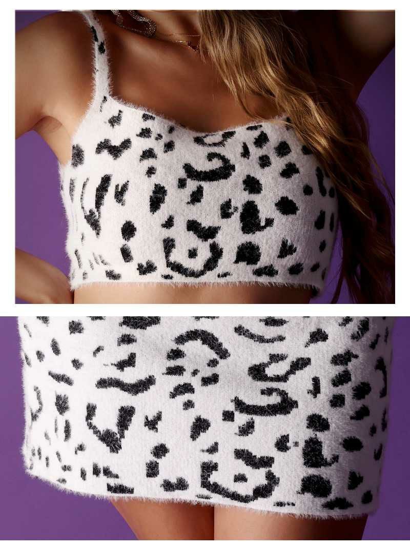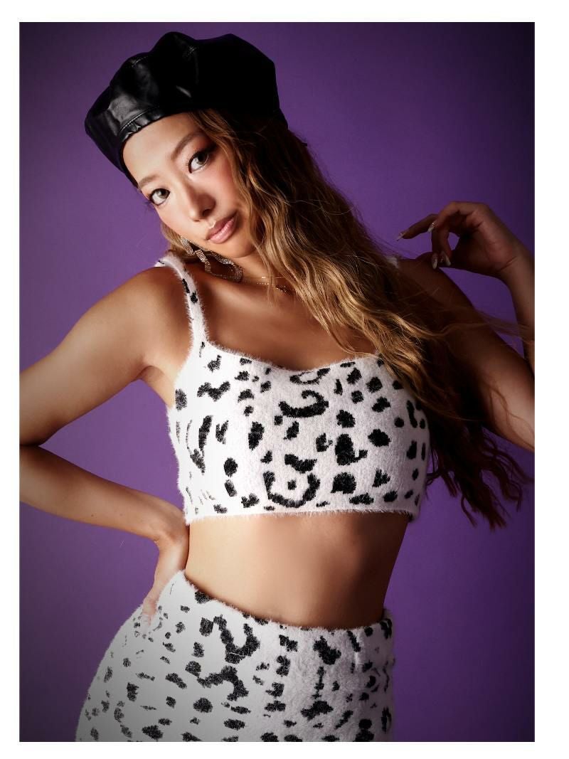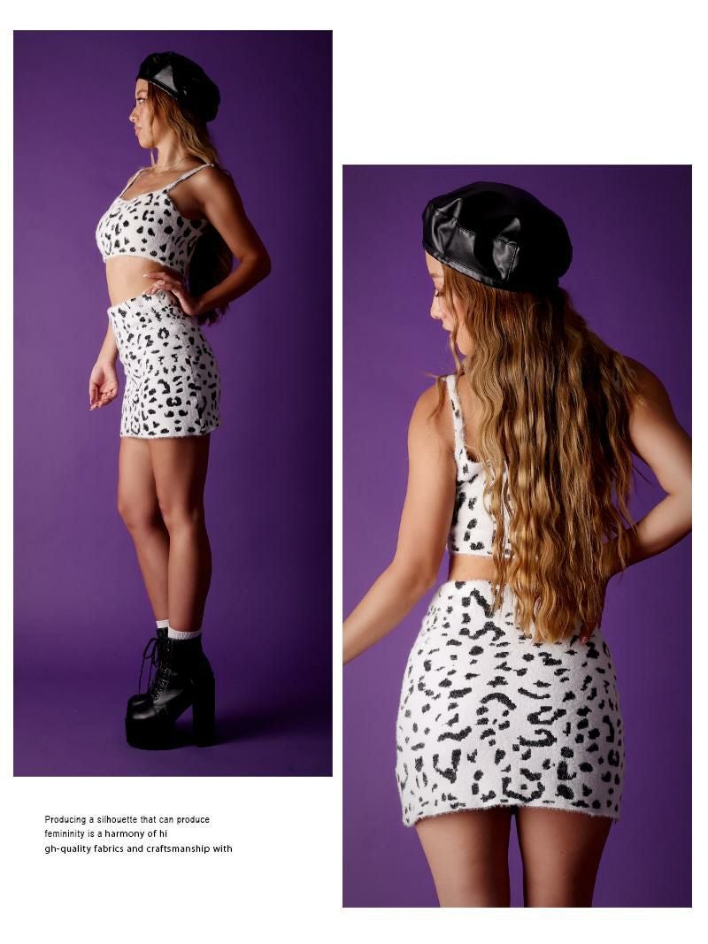 ふわふわモヘアのミニスカートセットアップ、着心地最高!オシャレ好きにはたまらないアニマル柄♪