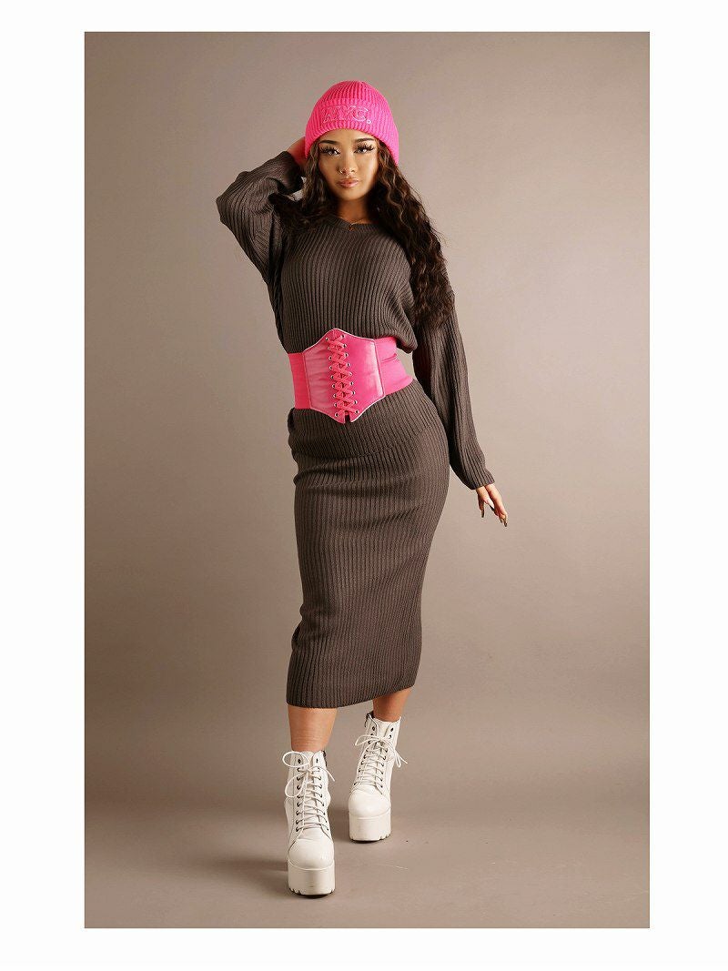 ロングスカートのリブニットセットアップ!あったかい&スタイルUP確実♪