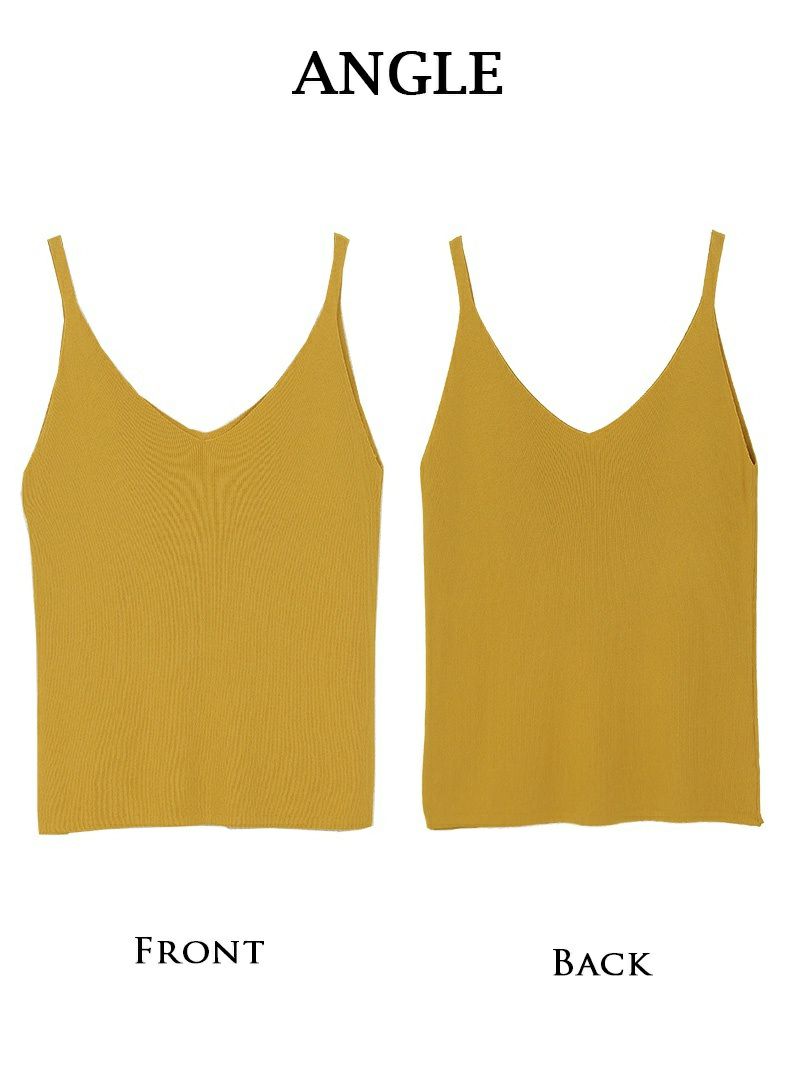 無地のキャミソールは程よい胸元のあき感で華奢見せのトップス。