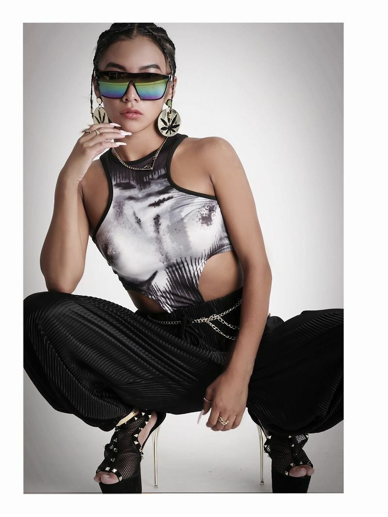 カジュアルにもモードにも着こなせるクールなプリントは、カッコイイ女性にぴったり! ストリート感のあるデザインは、ジーンズやスカートと合わせてもおしゃれに決まるので個性的でセクシーなダンサーにおすすめの一枚♪