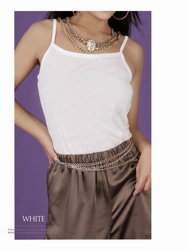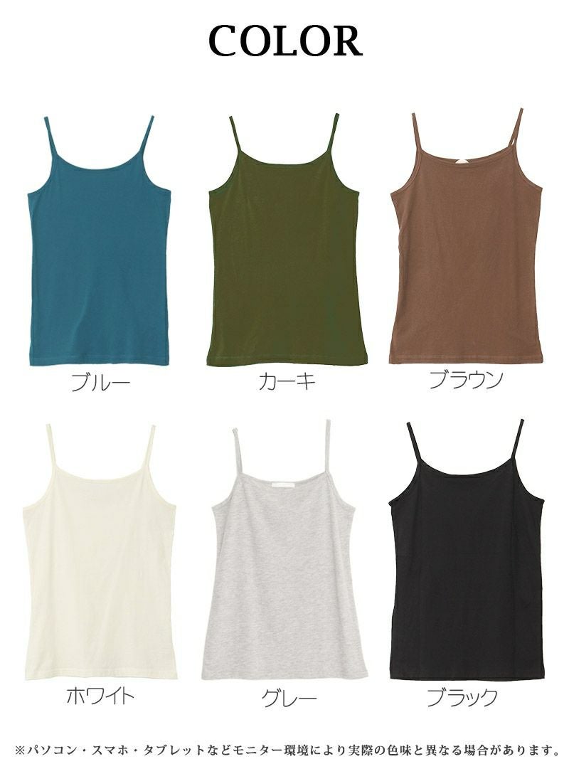 下着の透け防止やダンスコスチュームのインナーにもなるプチプラキャミは透けが気になる白トップスにも着こなせてるワンカラー肌着。