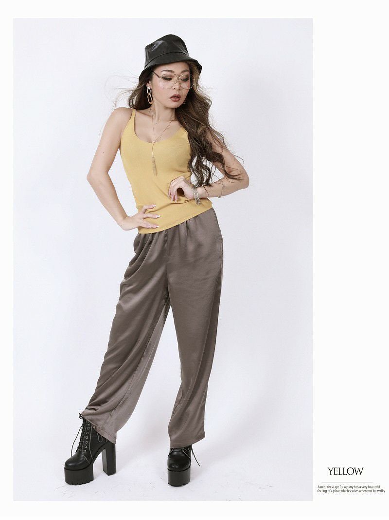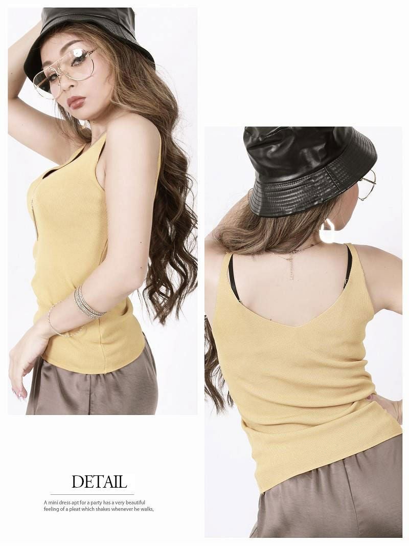 デコルテ周りを美しく見せる華奢なデザインが魅力のサマーリブニットキャミソールはストリートファッションにバッチリ。