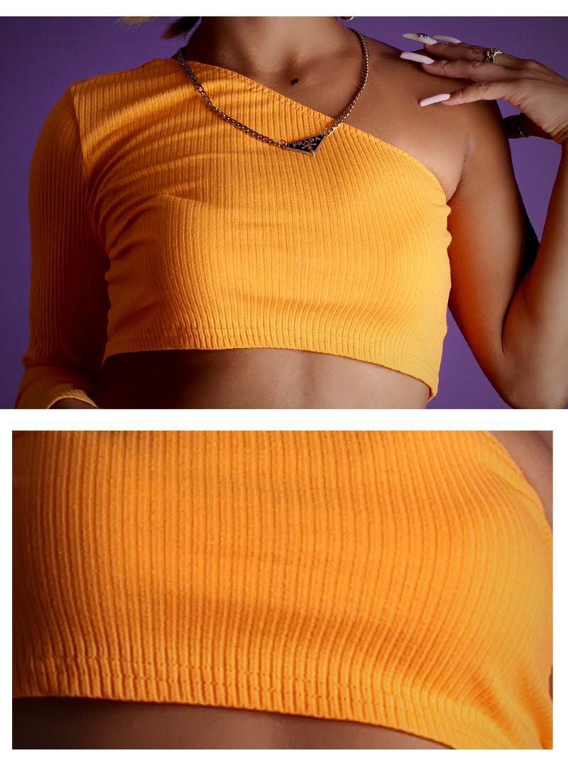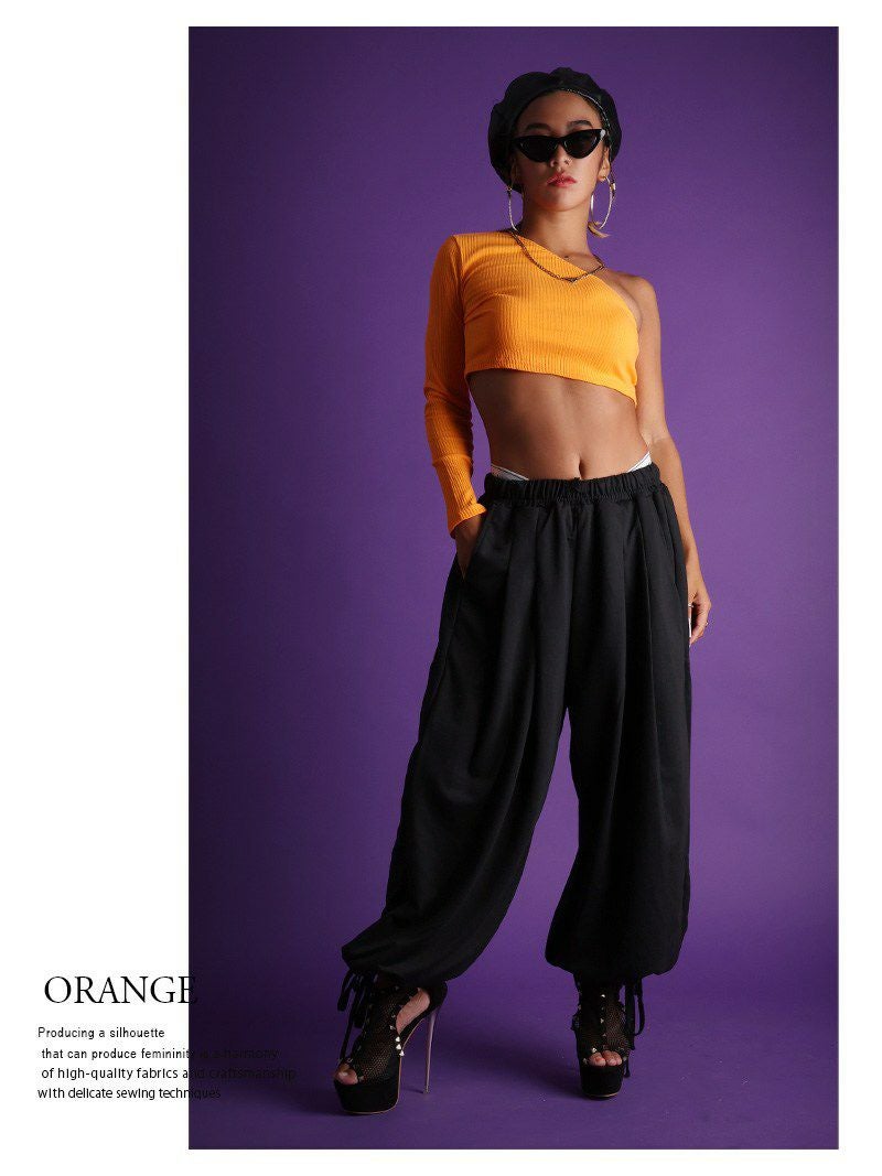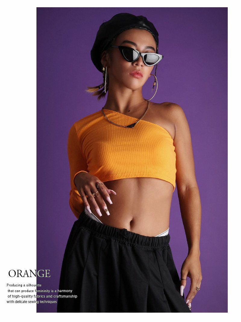 アシンメトリーなショート丈トップスでクールに決める!レッスン着や衣装にも◎
