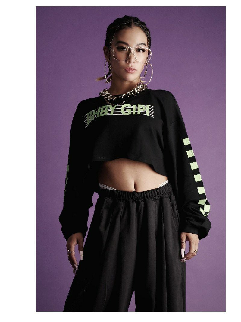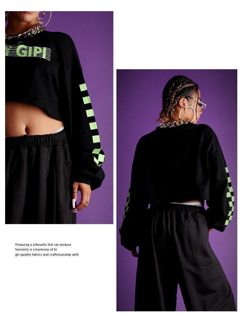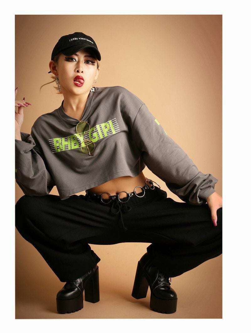 ショート丈スウェットでセクシー×ストリートMIX!ブラックとグレーでどんなコーデにも合わせやすいよ♪