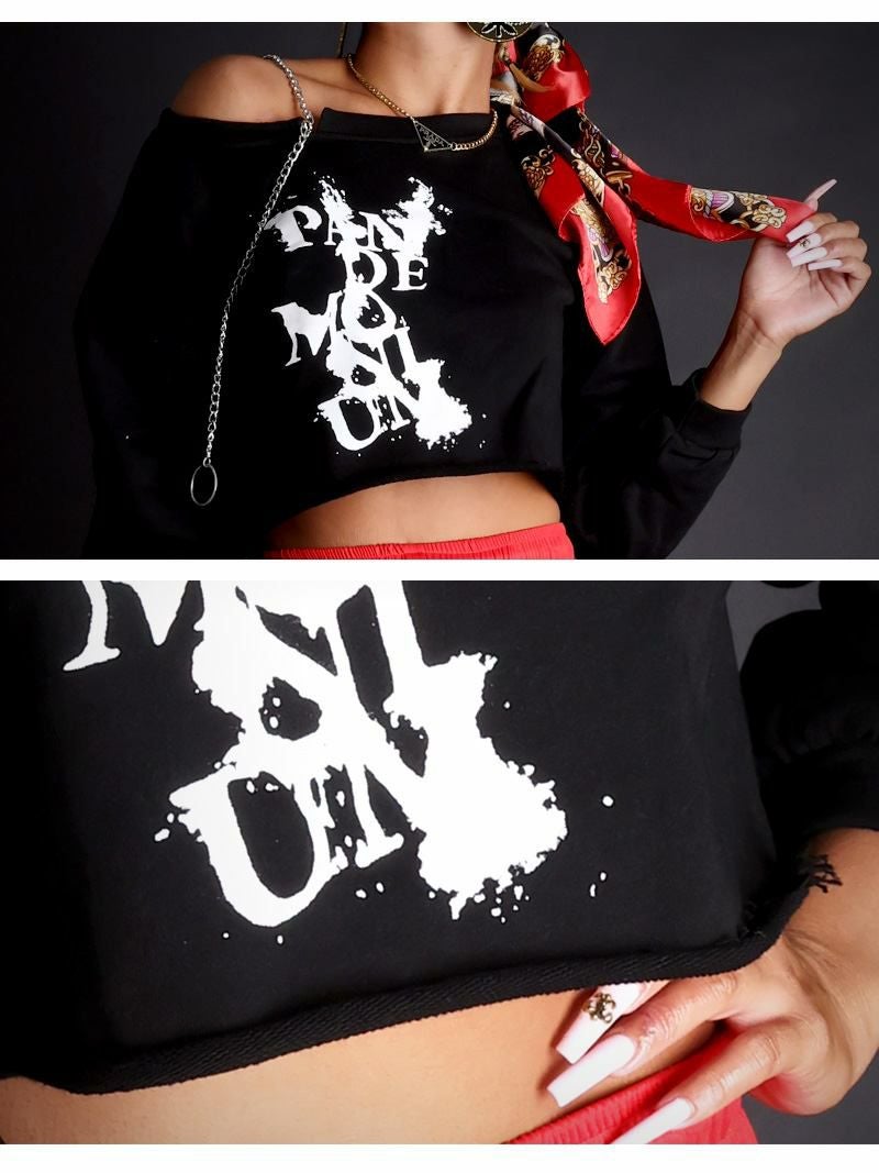パンクロゴとショート丈でクール&セクシー!ストリートコーデにピッタリのトップス!
