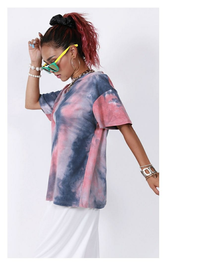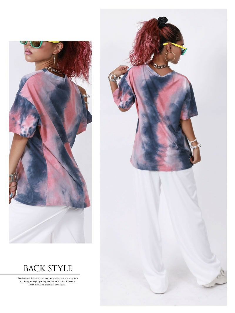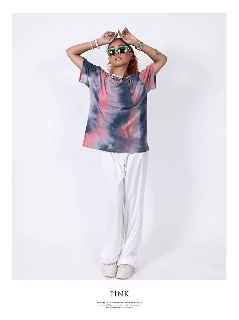 派手な総柄が目を惹くタイダイ柄は目立ち度大のトップスです。