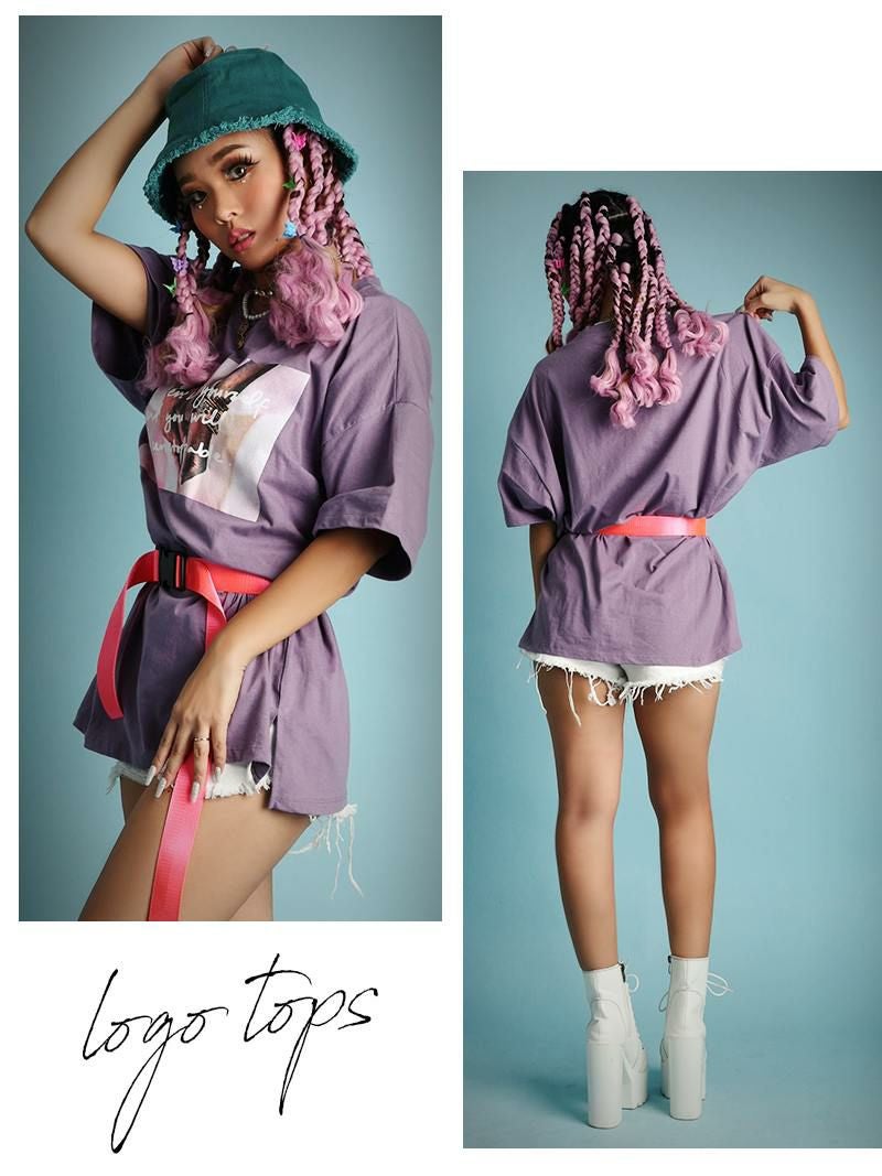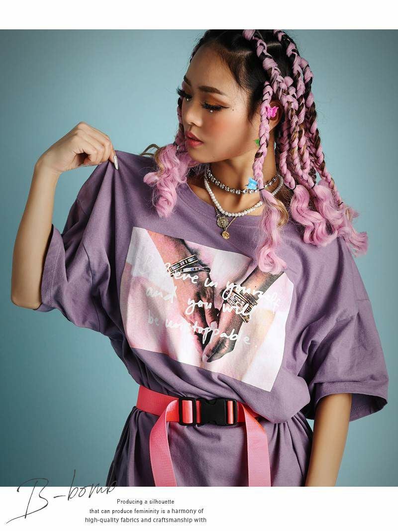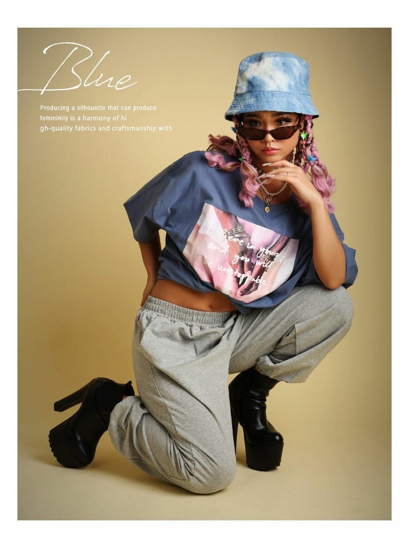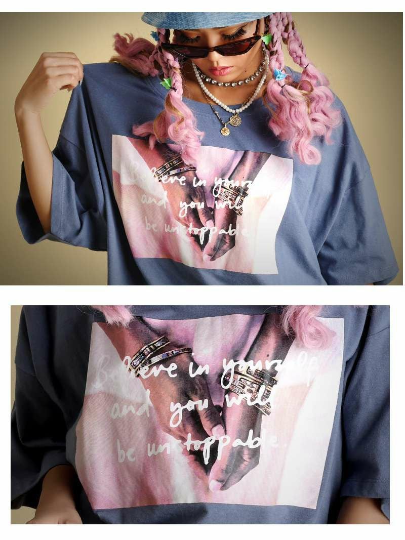 オーバーサイズのだぼだぼ感がかわいいフォトプリントTシャツ。