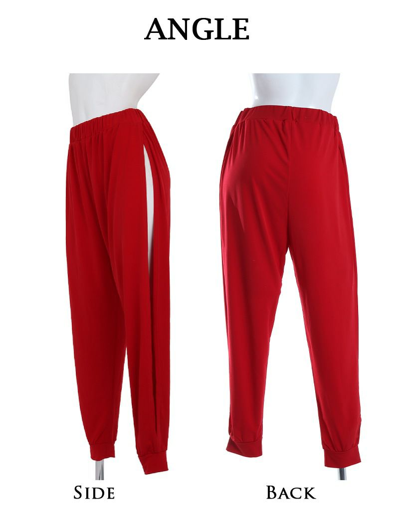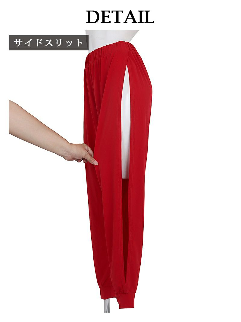 4. セクシー深スリットロングパンツ ダンス衣装【bombshell】(フリーサイズ)(ブラック/レッド)