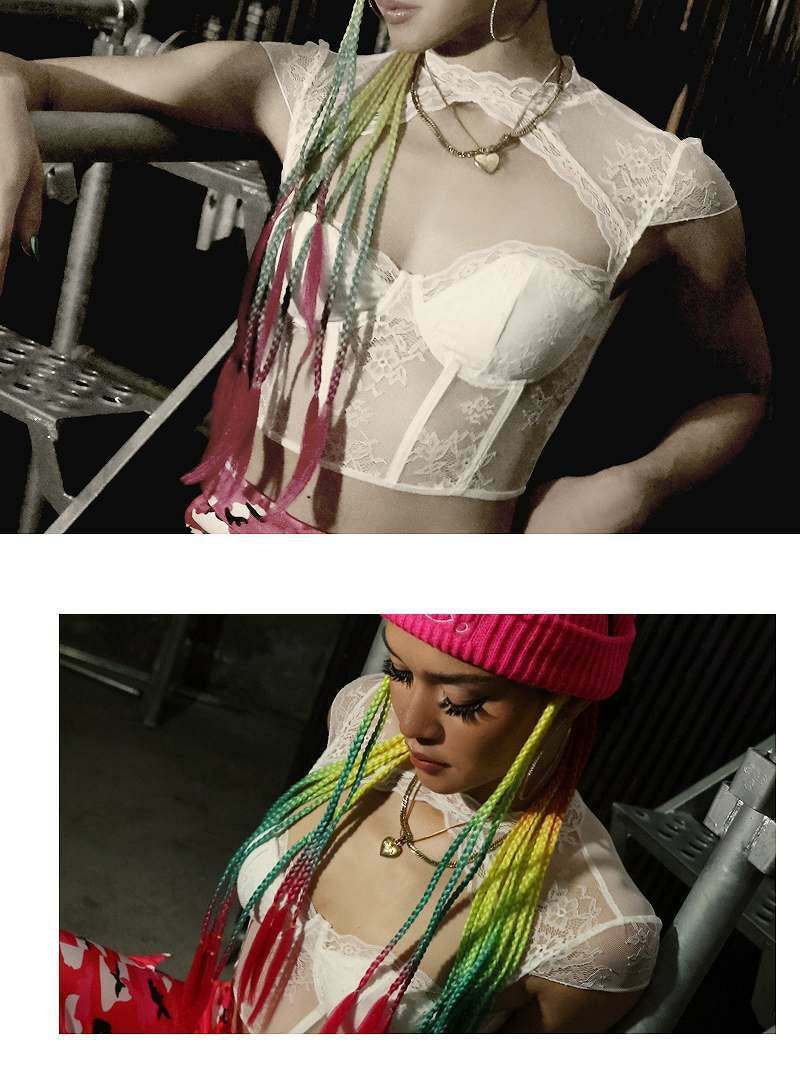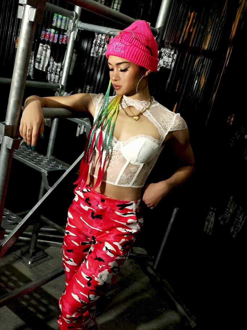 コーンロー風の編み込みデザインなのでダンサーのステージ衣装にオススメ。
