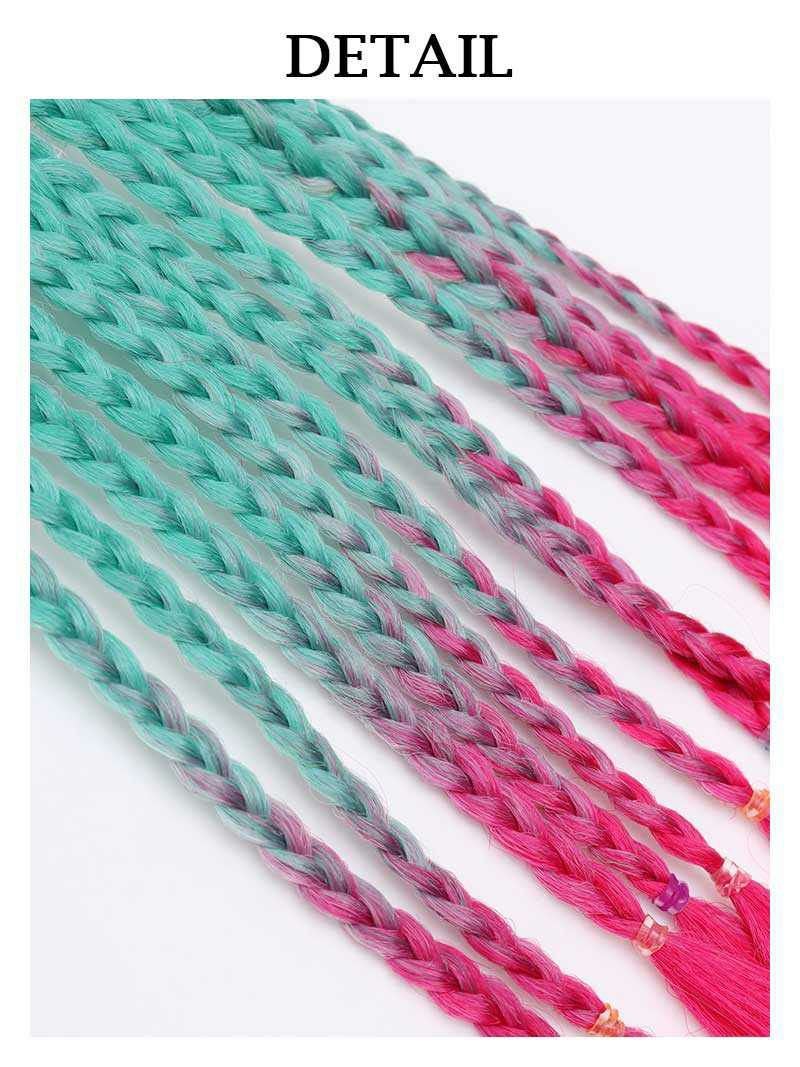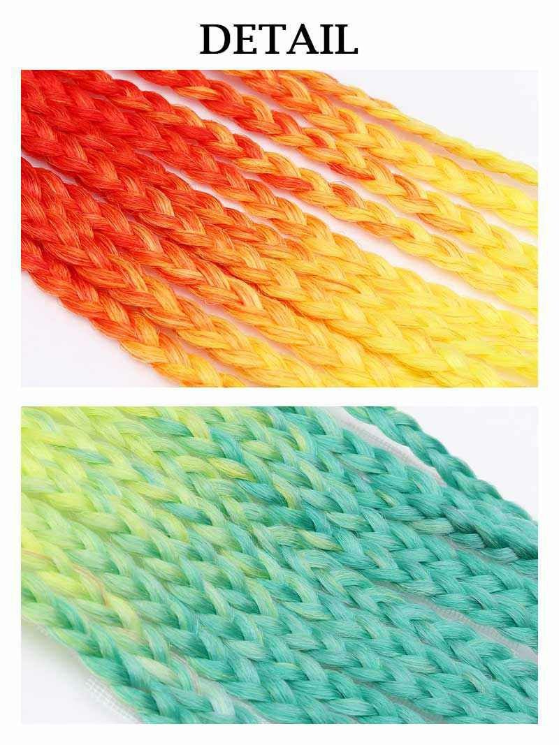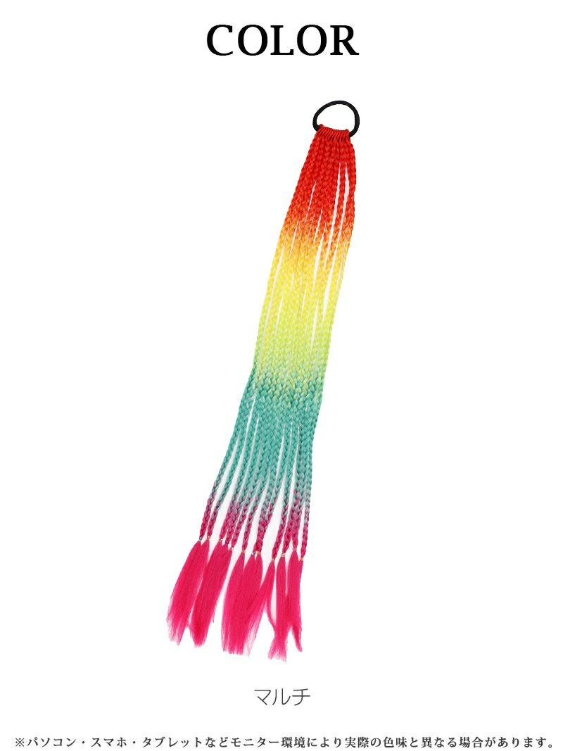 レインボーカラーの編み込みつけ毛はゴム付きなので簡単に着脱が可能。