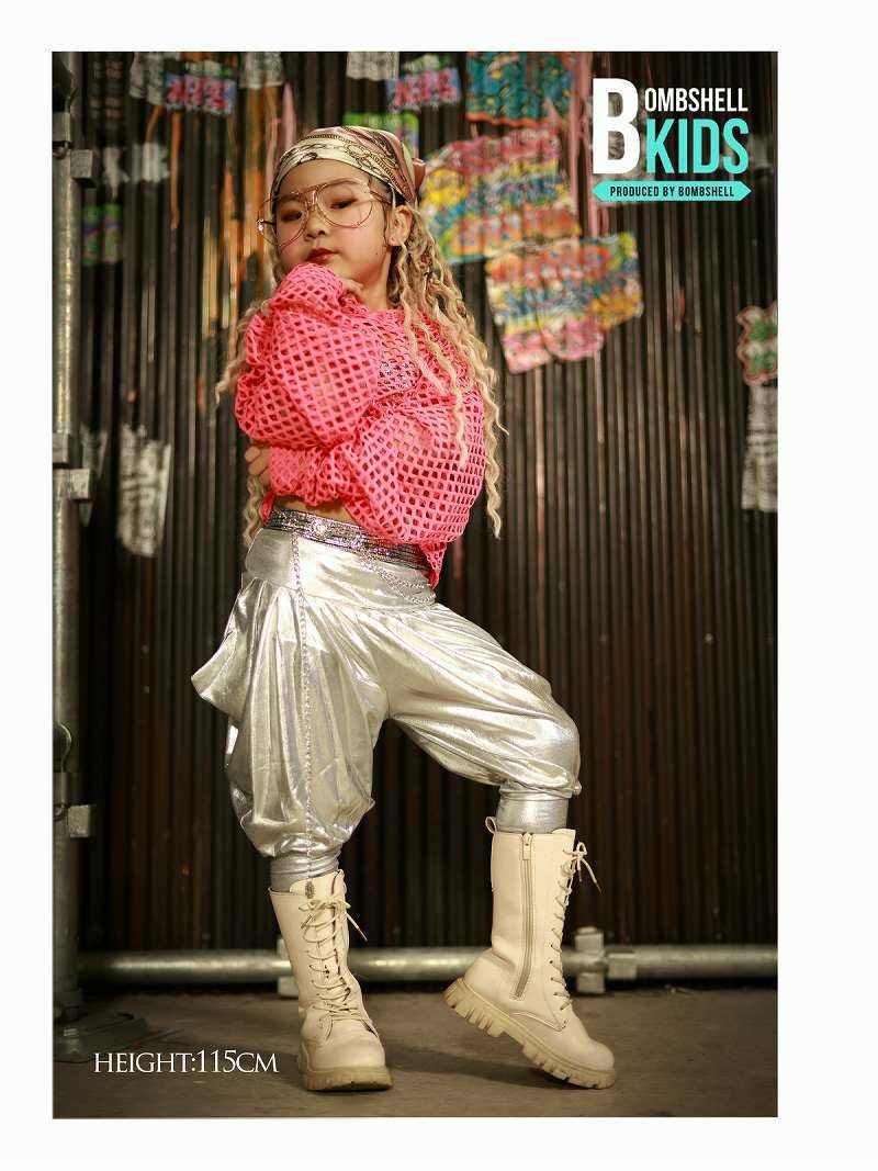 伸縮性のある素材で動きやすく、キッズダンサーの激しいパフォーマンスをしっかりサポートします。