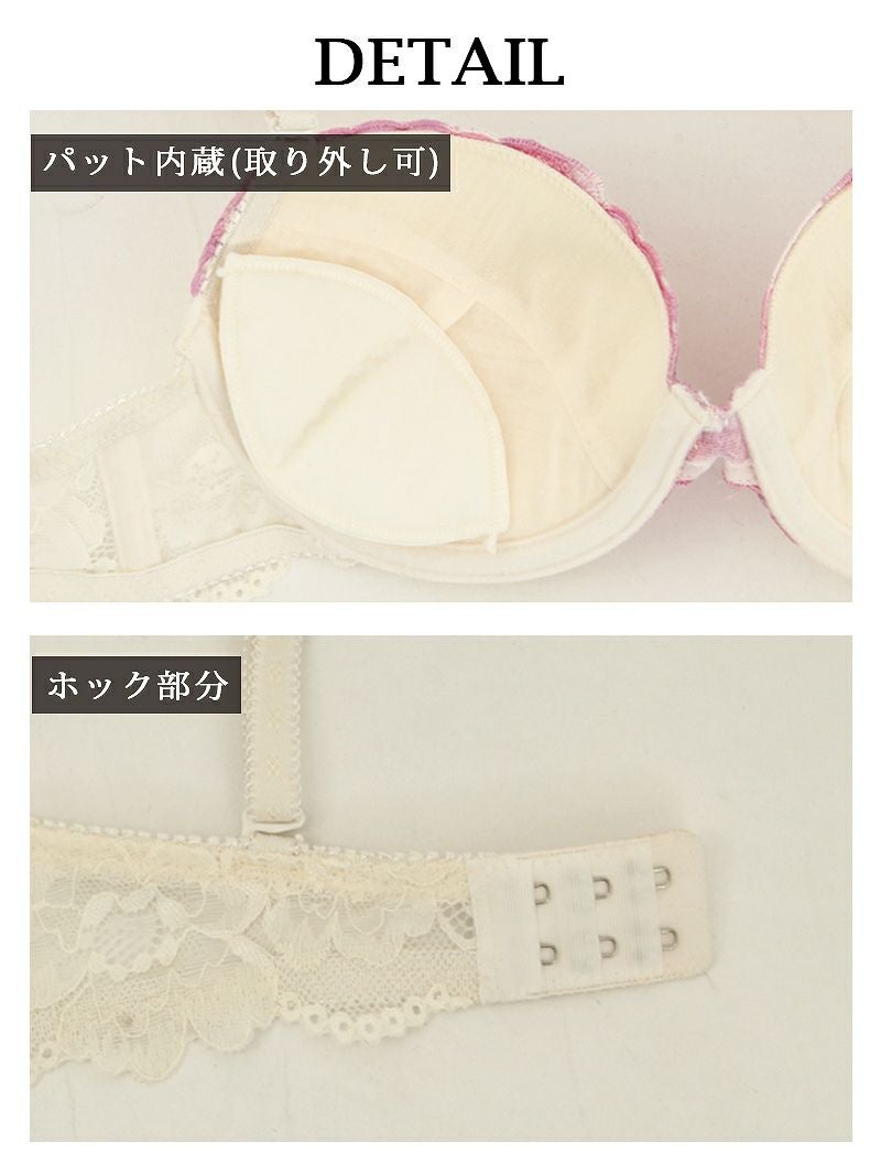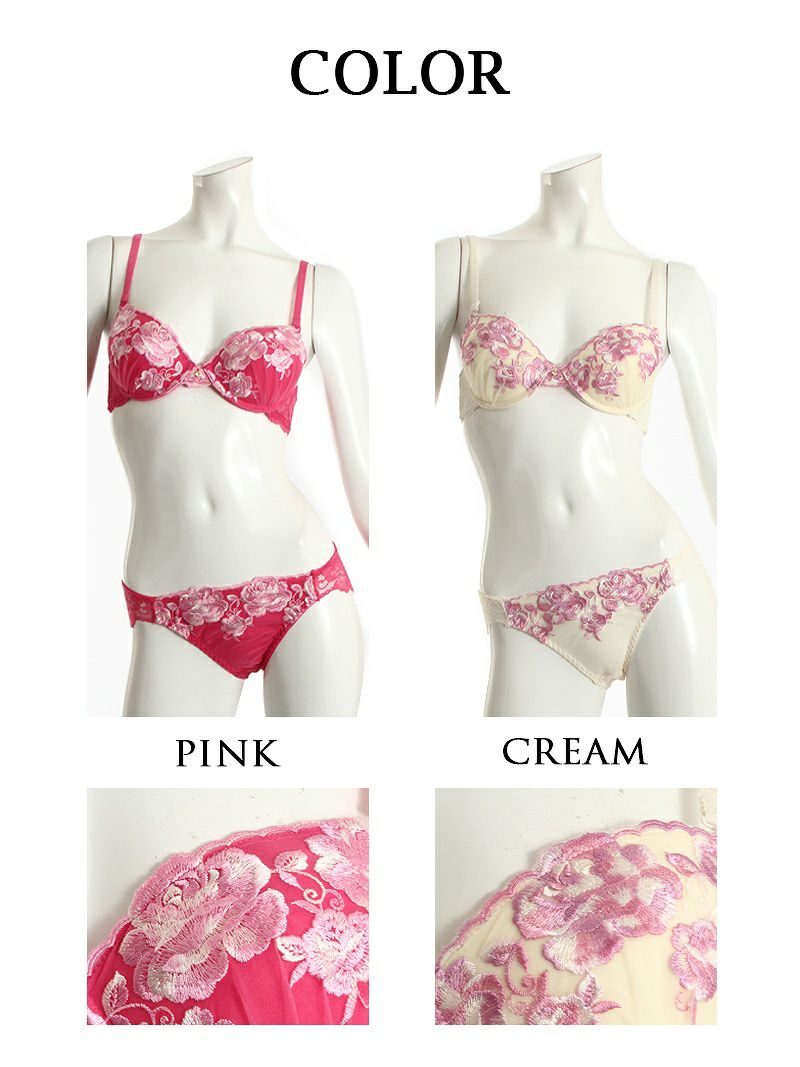 甘めカラー×薔薇刺繍で魅せる美盛れランジェリーセット。