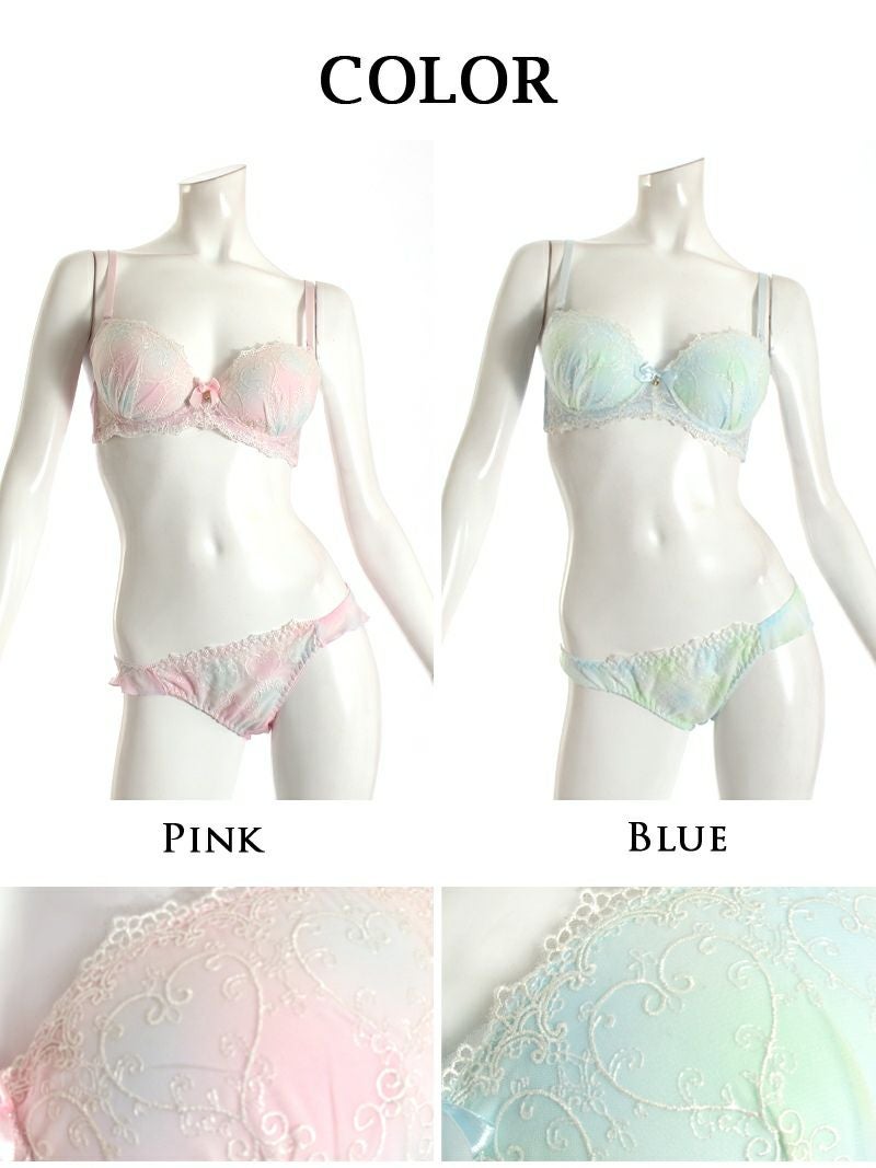 グラデーション&刺繍で夢のようなランジェリー☆ハート柄ブラ&ショーツ♪