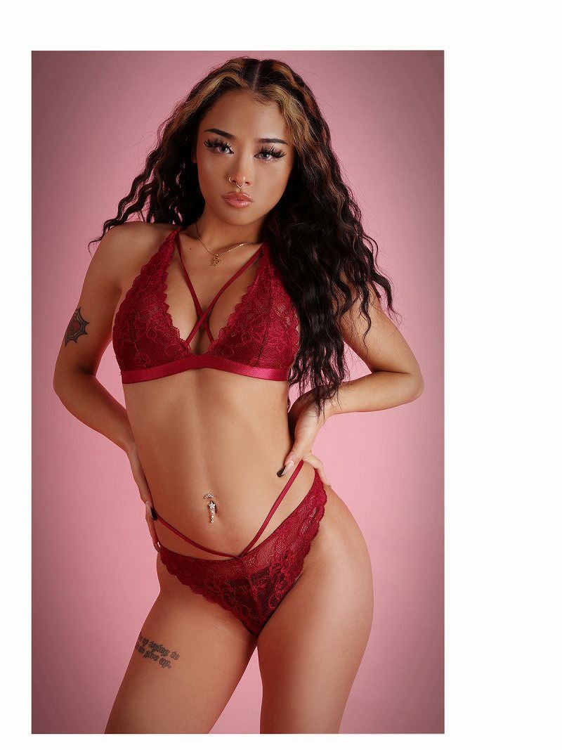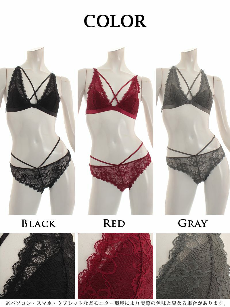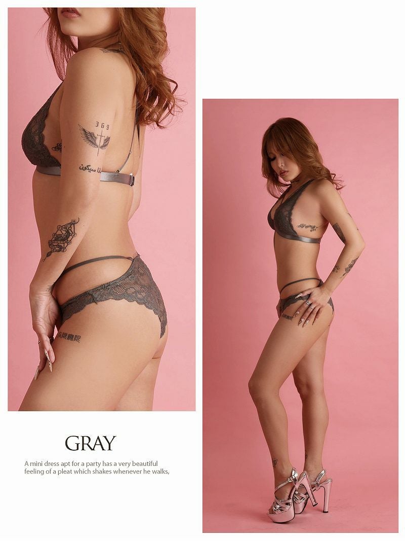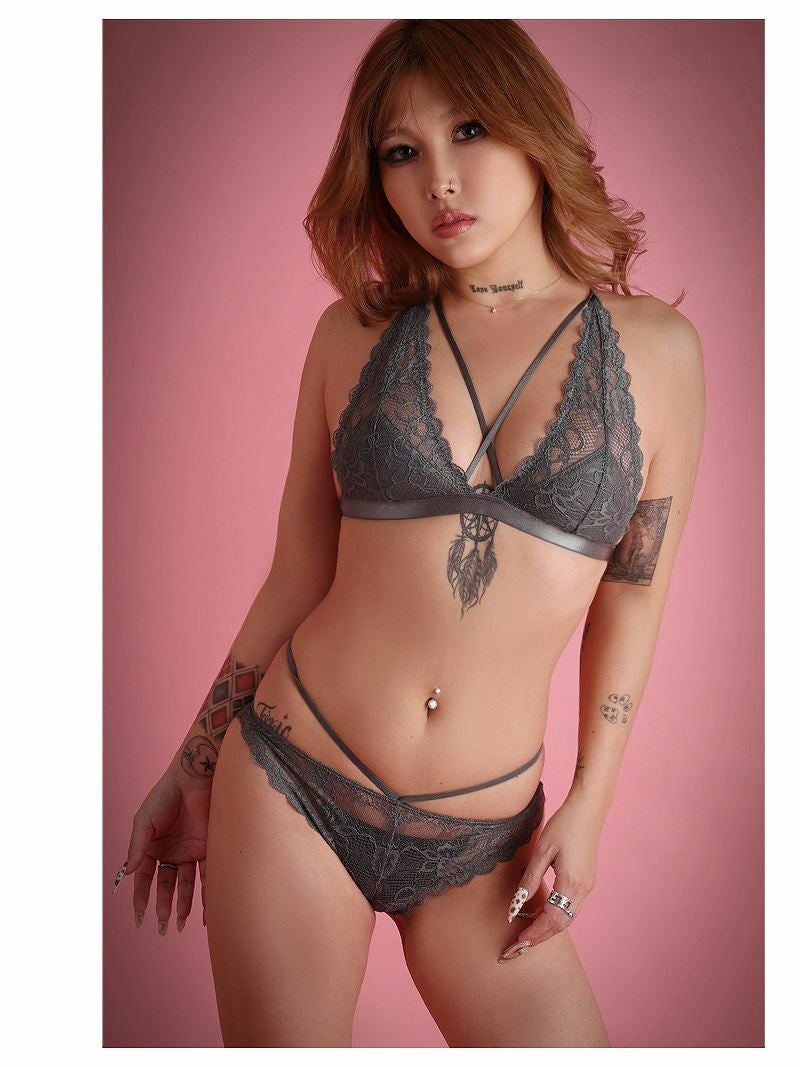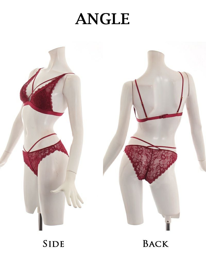 ダブルストリングが色っぽい三角ブラとショーツのレースセット♪